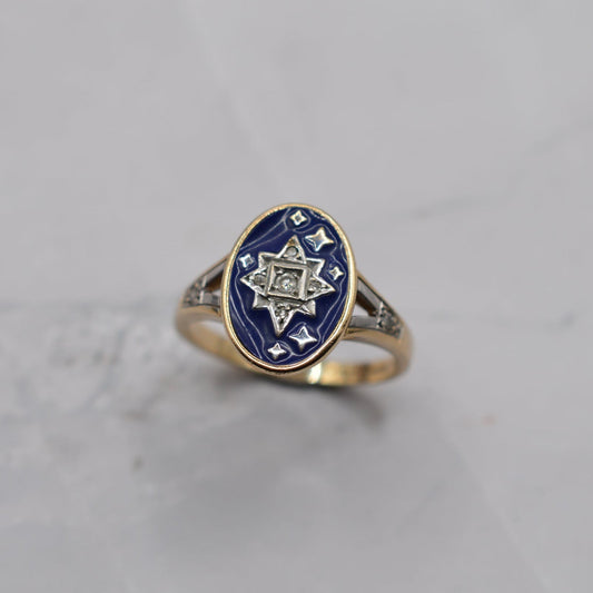 Y2K Millennium 9ct Gold Blue Enamel Star & Diamond Ring