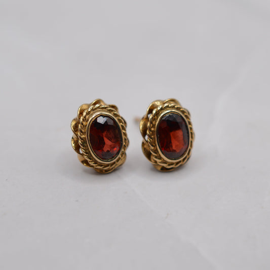 1990s 9ct Gold Garnet Stud Earrings with Rope-Twist Border