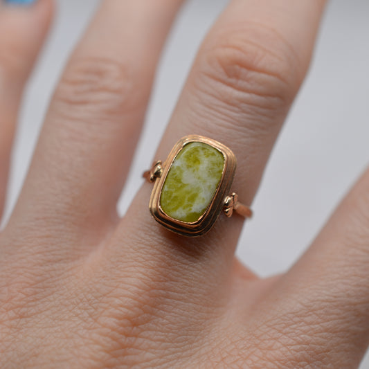 Irish 9ct Gold Green Connemara Marble Dress Ring