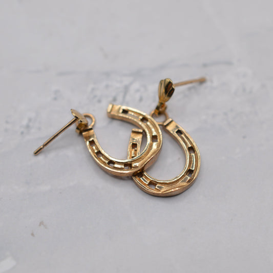 1990s 9ct Gold Horseshoe Drop Earrings