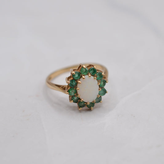 1980s 9ct Gold Opal & Emerald Cluster Ring