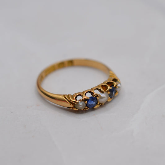 Antique 1896 Late Victorian 18ct Gold Sapphire & Pearl Five-Stone Ring
