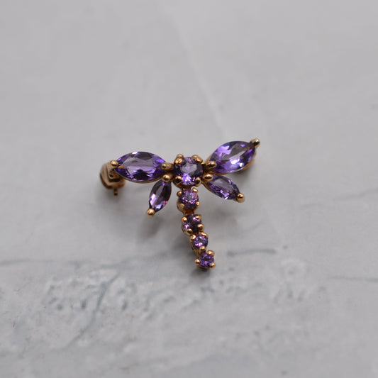 Y2K 9ct Gold Amethyst Dragonfly Brooch