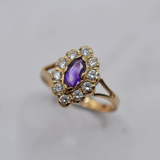 1990s Vintage 9ct Gold Amethyst & CZ Cluster Cocktail Ring