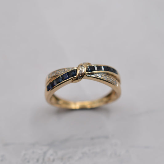 9ct Gold Sapphire & Diamond Crossover Ring