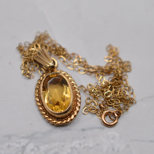1970s Vintage 9ct Gold Citrine Pendant Necklace
