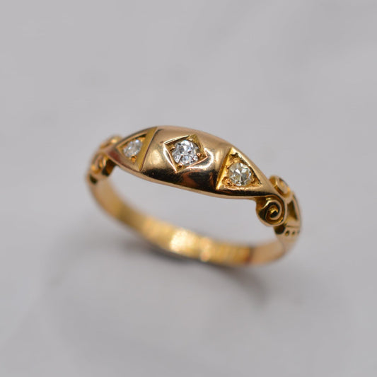 Antique Victorian 1870s 18ct Gold Diamond Trilogy Ring