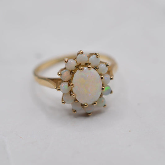 1980s Vintage 9ct Gold Opal Cluster Ring