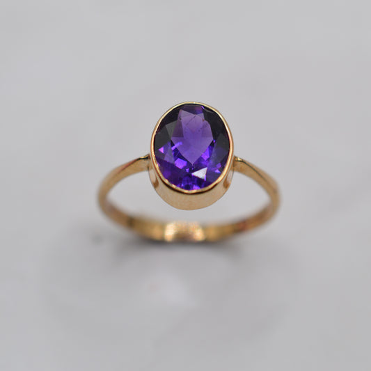 1990s 9ct Gold Amethyst Bezel-Set Ring