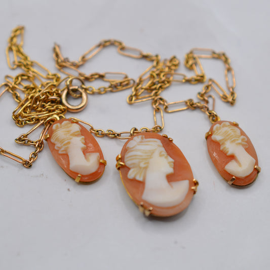 1980s Vintage 9ct Gold Triple Cameo Figaro Necklace