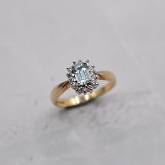 9ct Gold Aquamarine & Diamond Cluster Ring