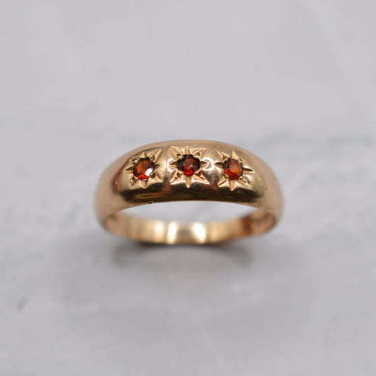 1980s 9ct Gold Garnet Trilogy Gypsy Ring
