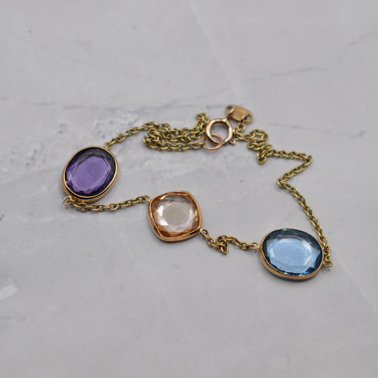9ct Gold Citrine, Amethyst & Topaz Bracelet (7”)