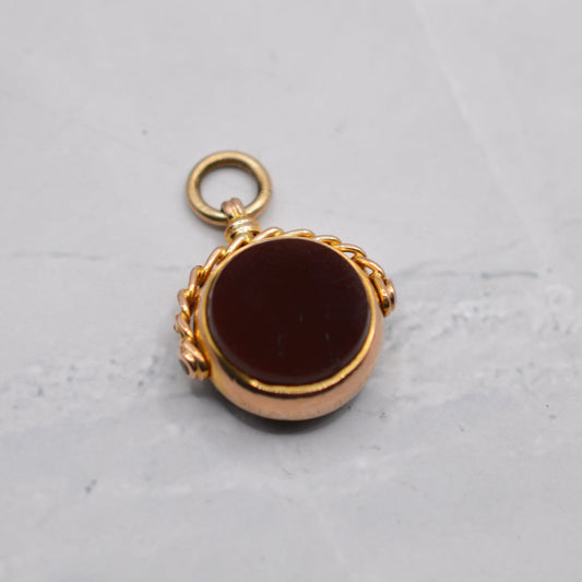 Antique 1909 Edwardian 9ct Gold Carnelian & Bloodstone Swivel Fob/Pendant