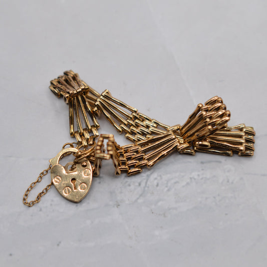 1990s 9ct Gold Four-Bar Gate Bracelet with Heart Padlock