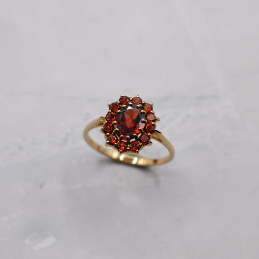 9ct Gold Garnet Cluster Ring