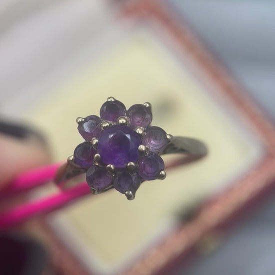 1970s Vintage 9ct Gold Amethyst Floral Cluster Ring