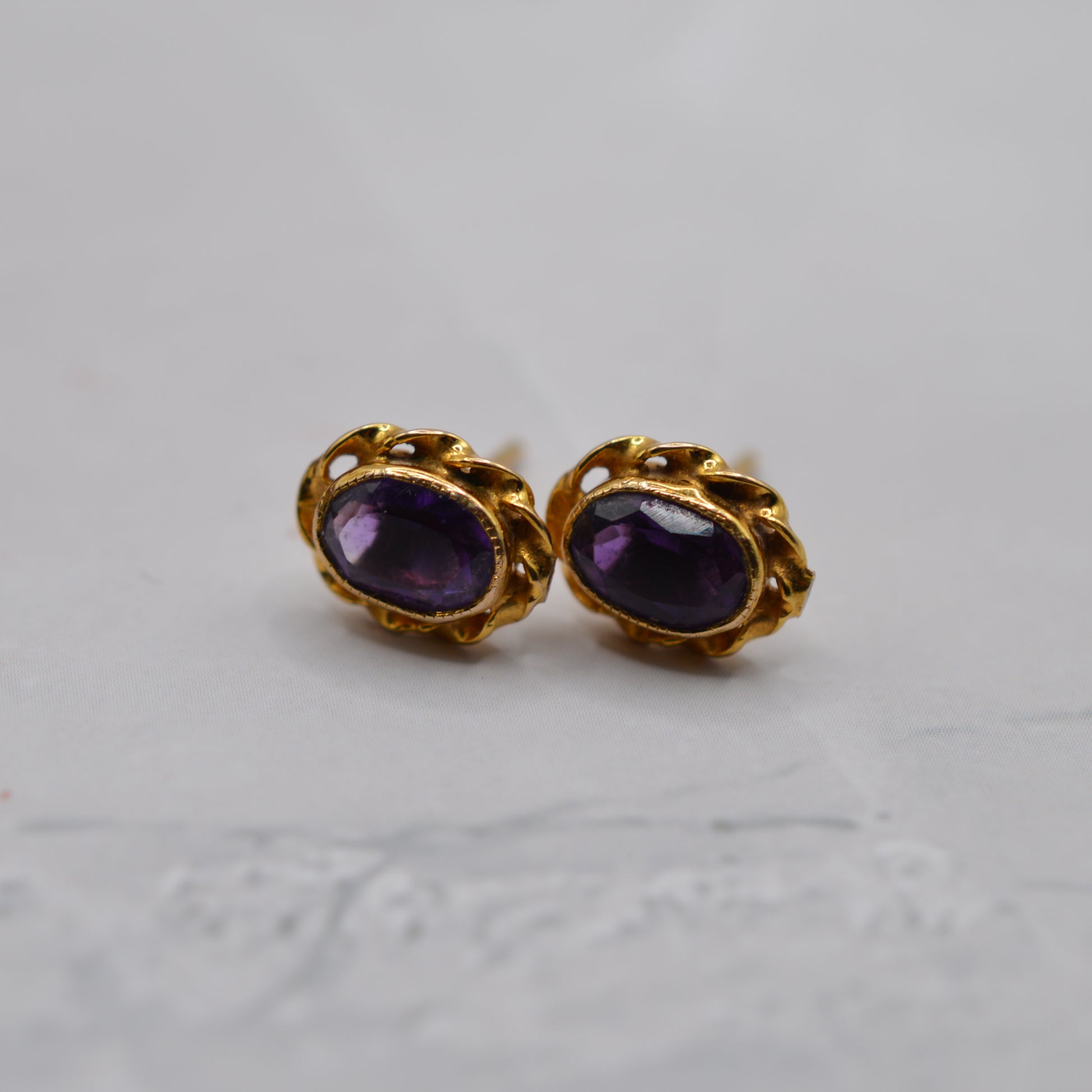 1970s Vintage 9ct Gold Amethyst Stud Earrings