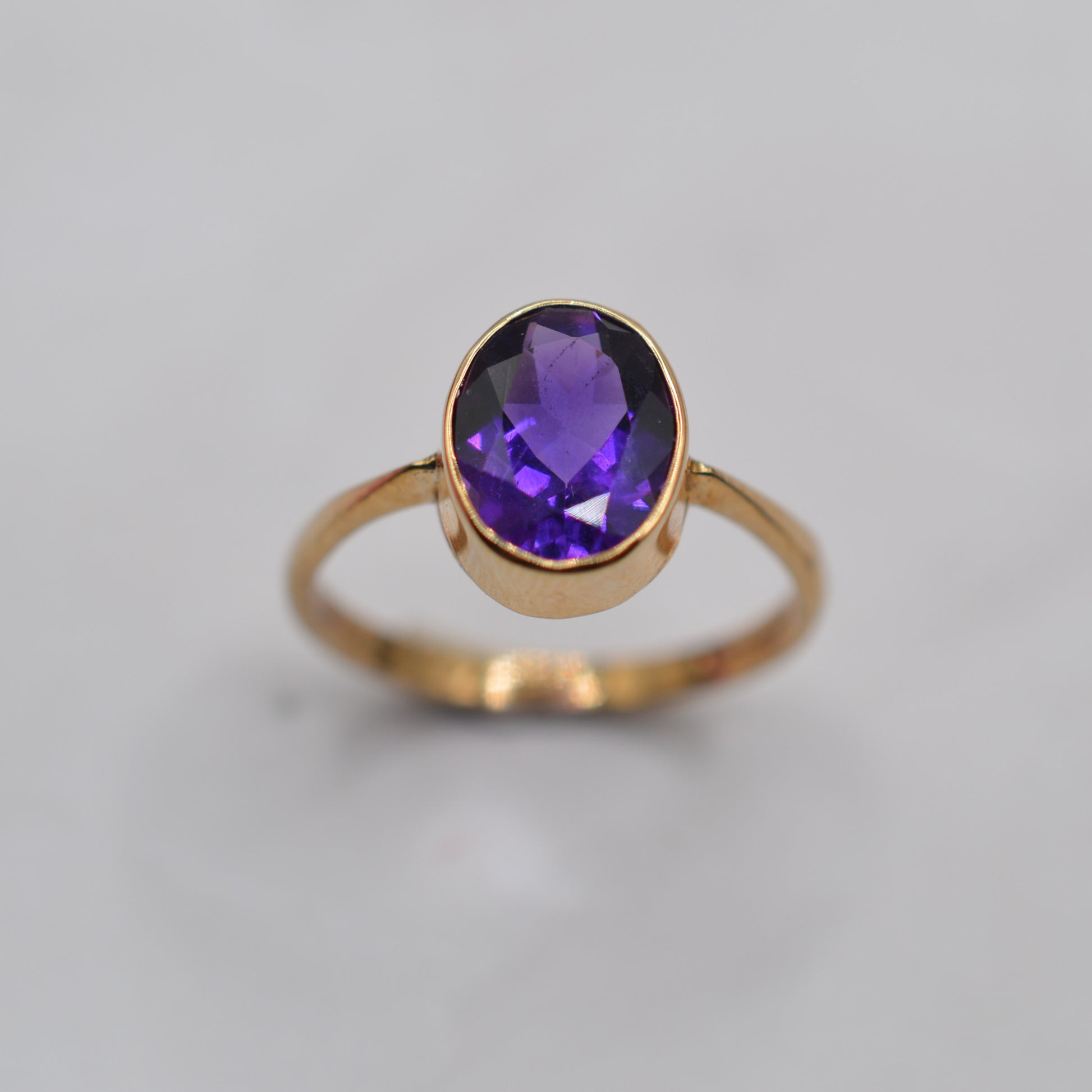 1990s 9ct Gold Amethyst Bezel-Set Ring