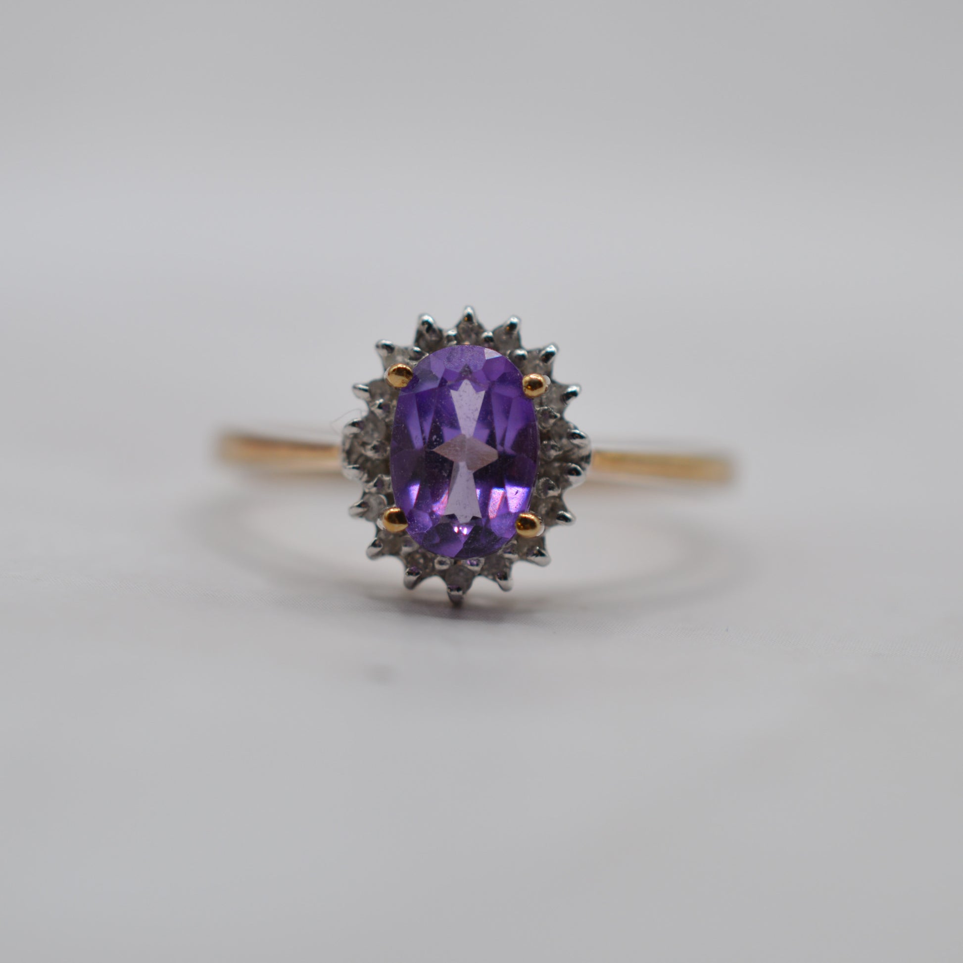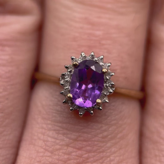 Vintage 9ct Gold Amethyst & Diamond Cluster Ring