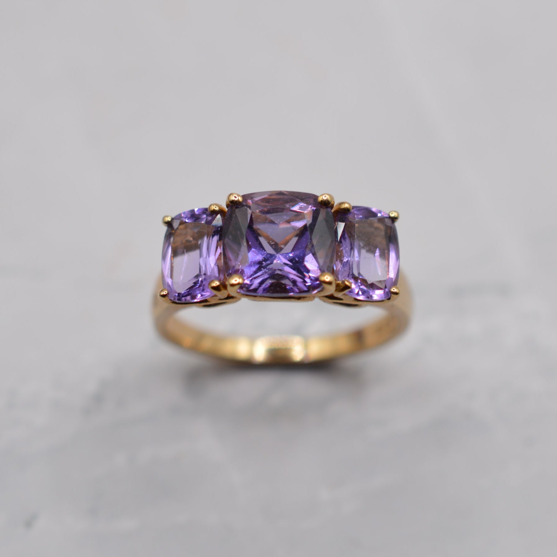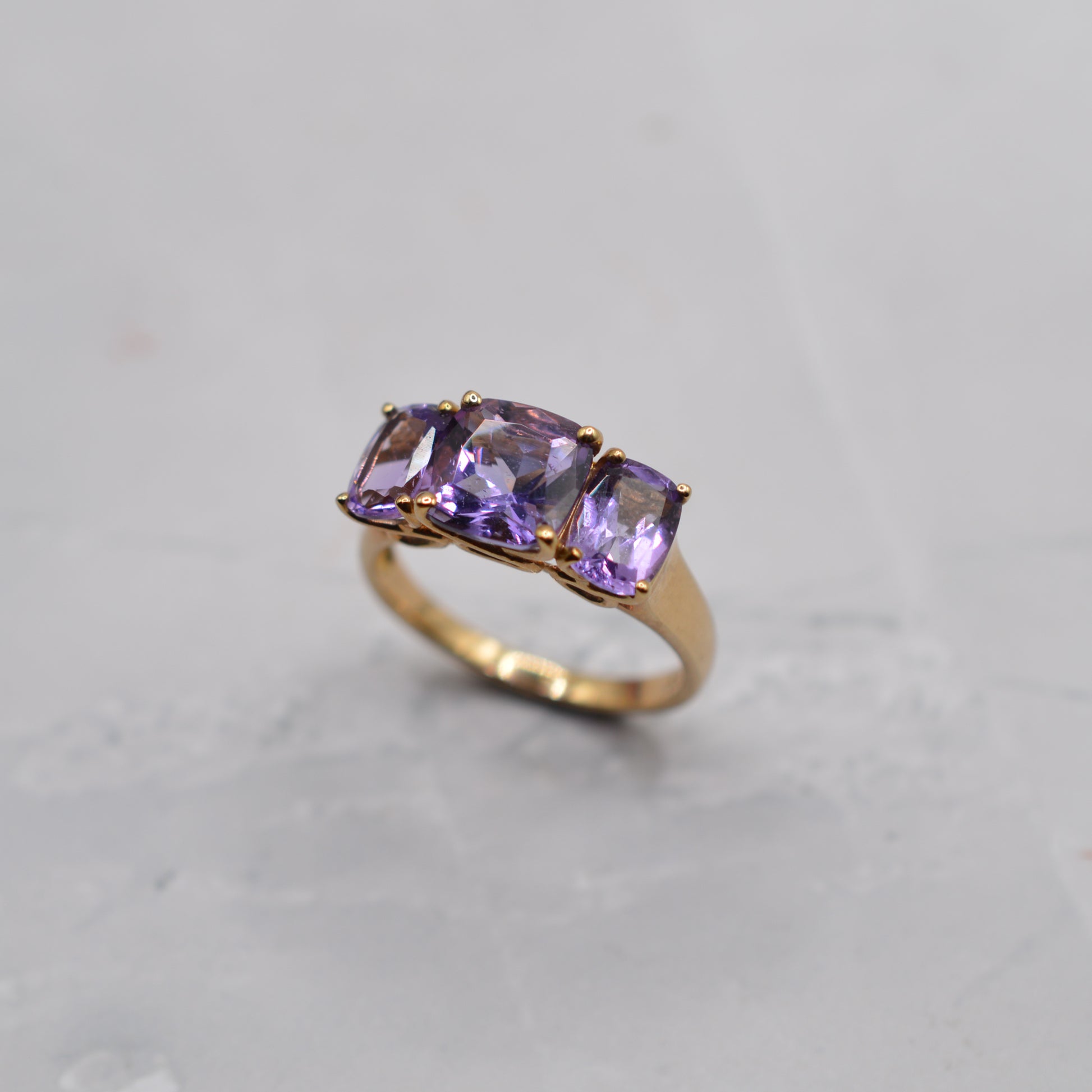 Chunky Y2K 9ct Gold Amethyst Trilogy Ring