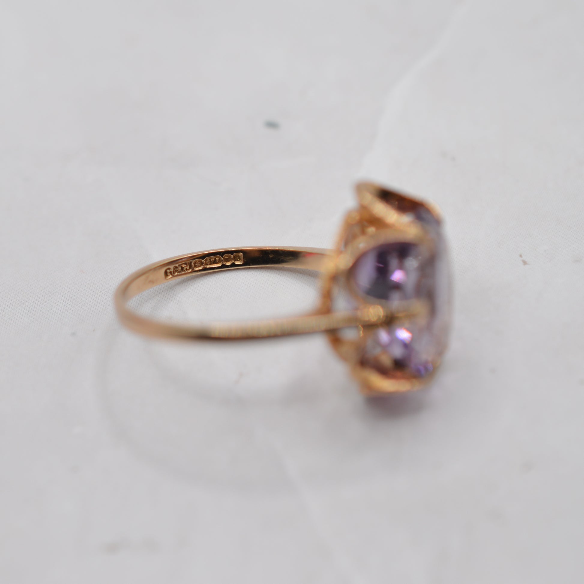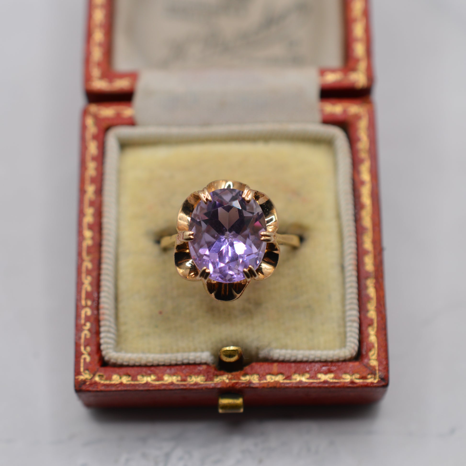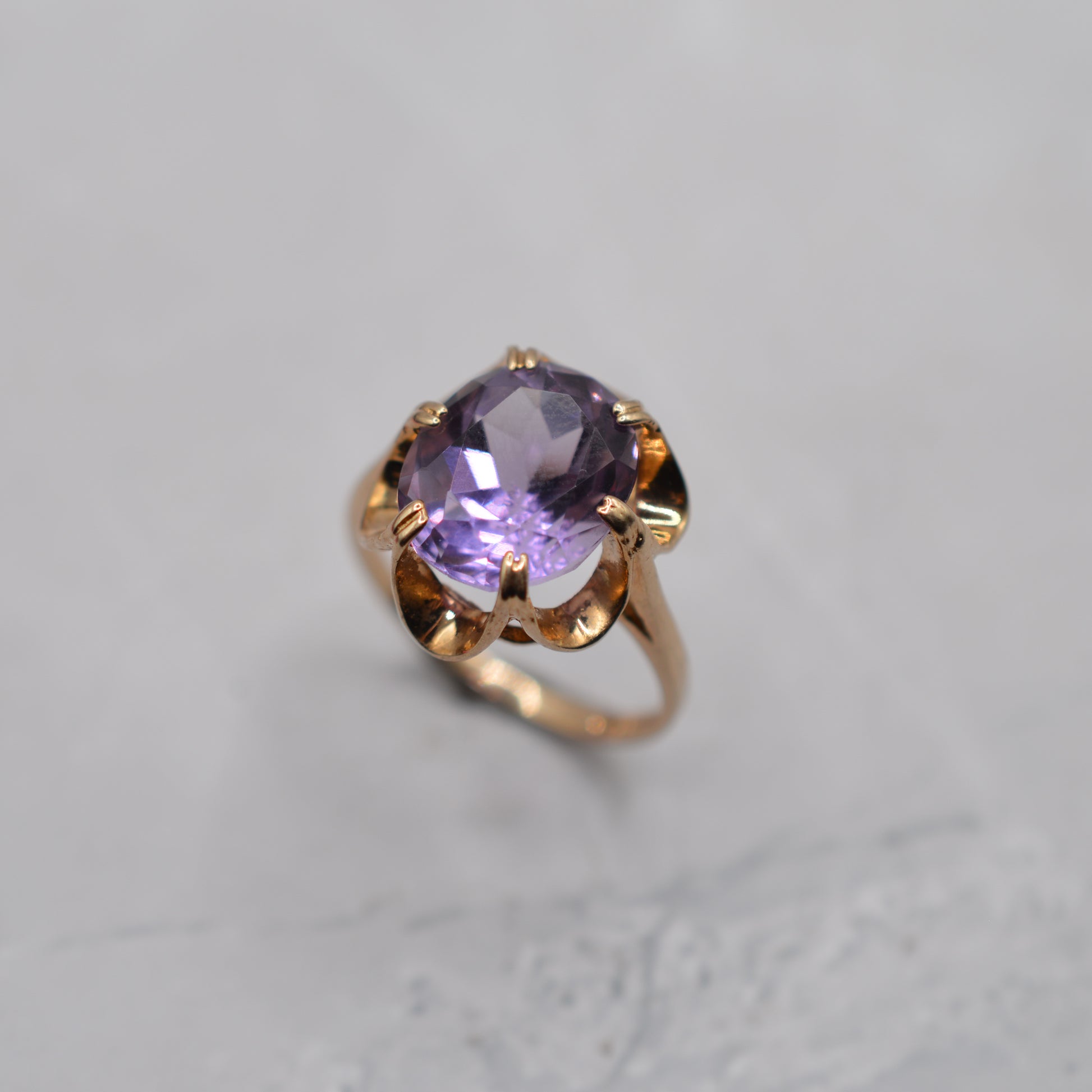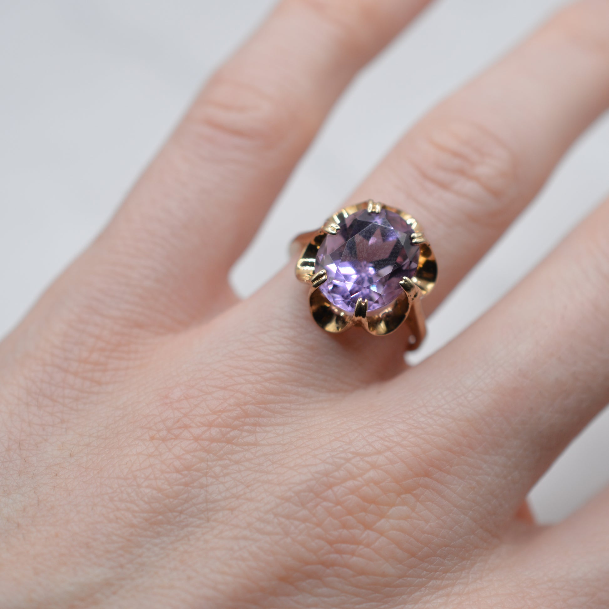 1990s 9ct Gold 4ct Amethyst Ring in Buttercup Setting