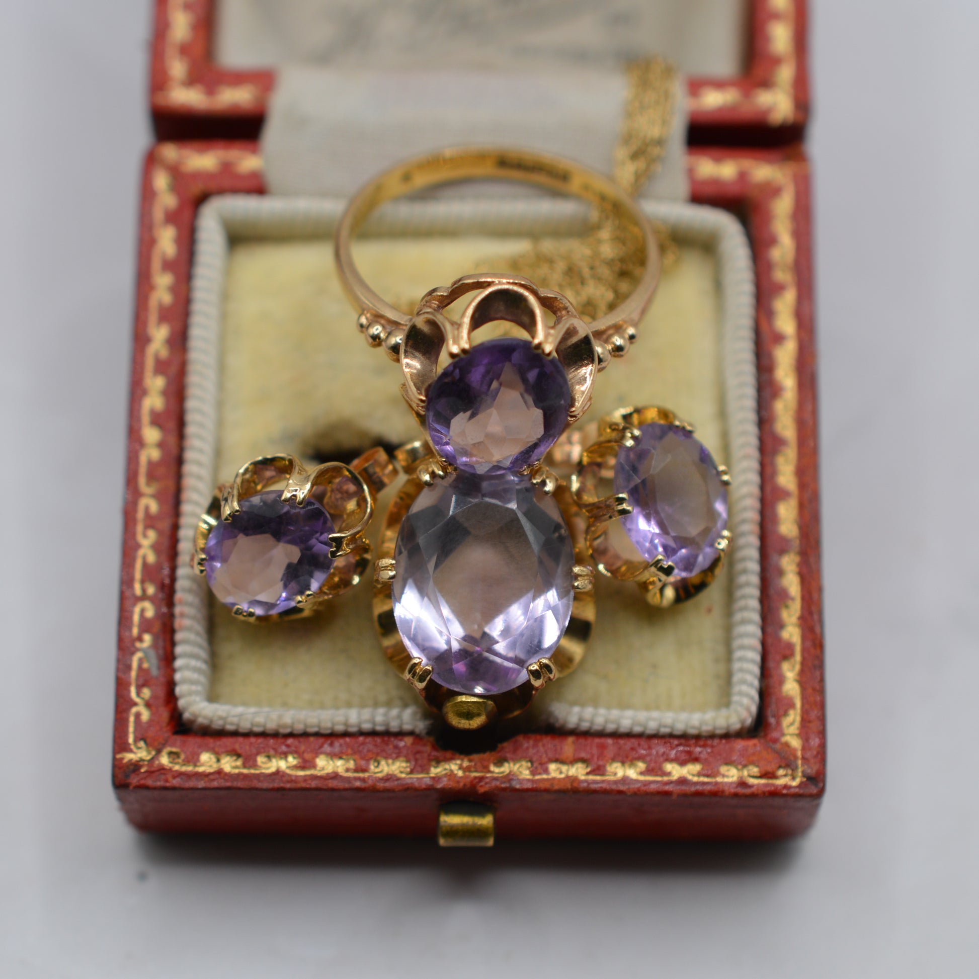 Vintage 9ct Gold Amethyst Ring, Necklace & Earrings Suite