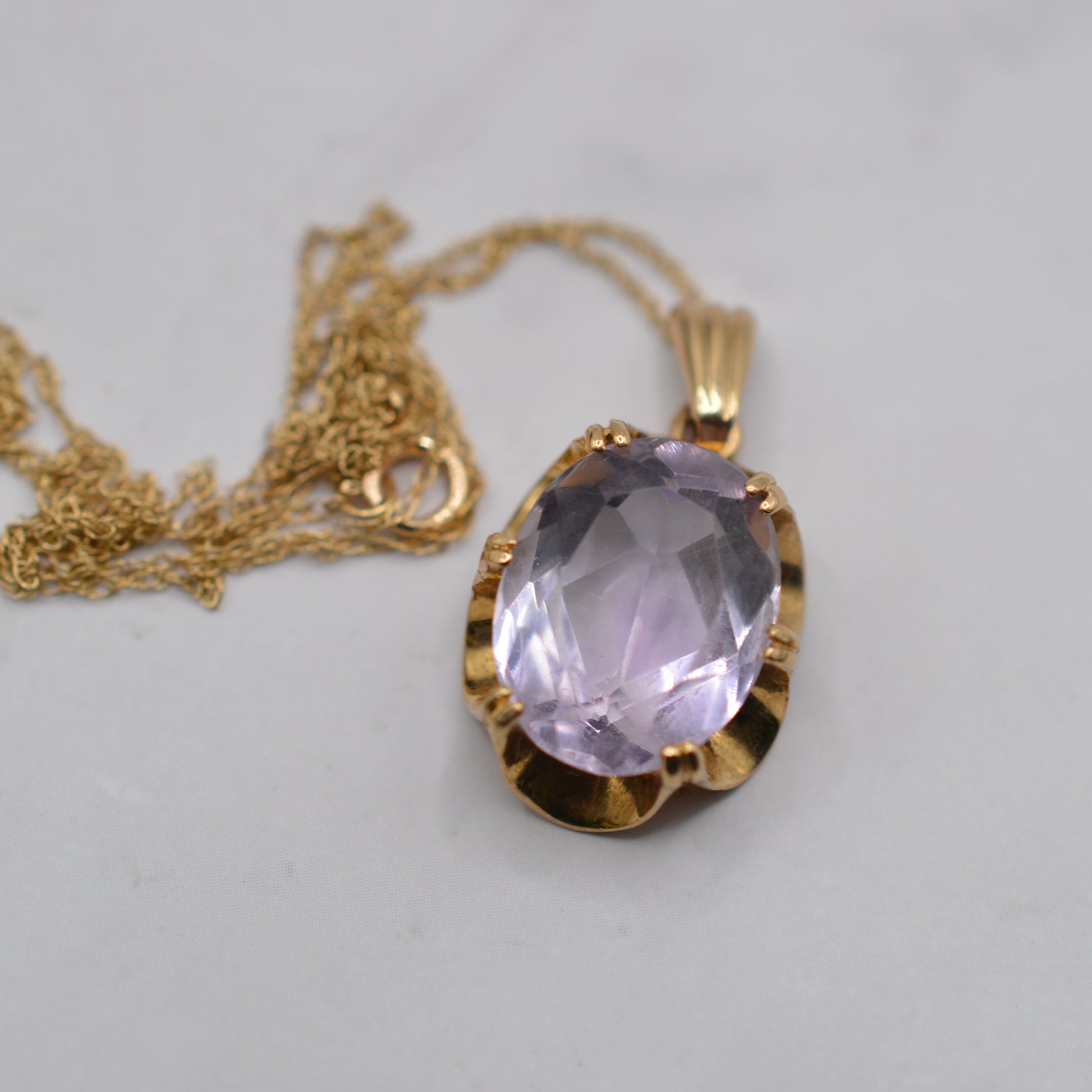 • Large oval-cut amethyst (approx. 14mm x 10mm) in a buttercup claw setting