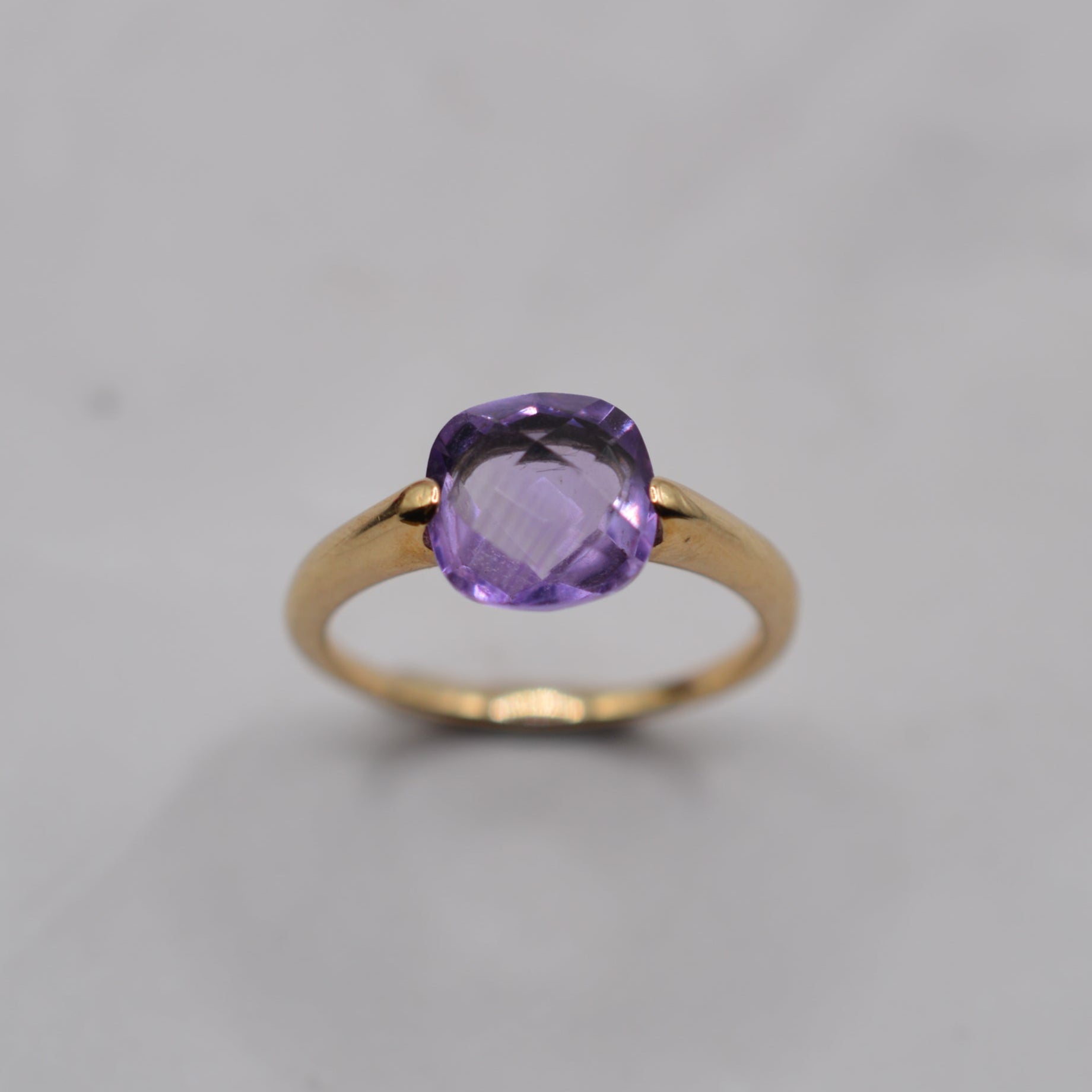 9ct Gold Checkerboard Amethyst Solitaire Ring