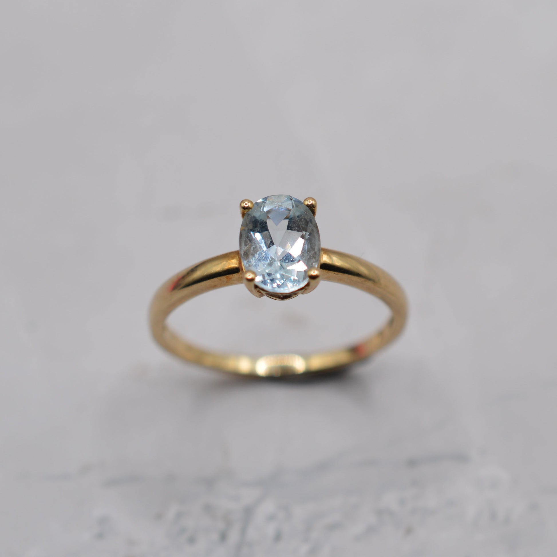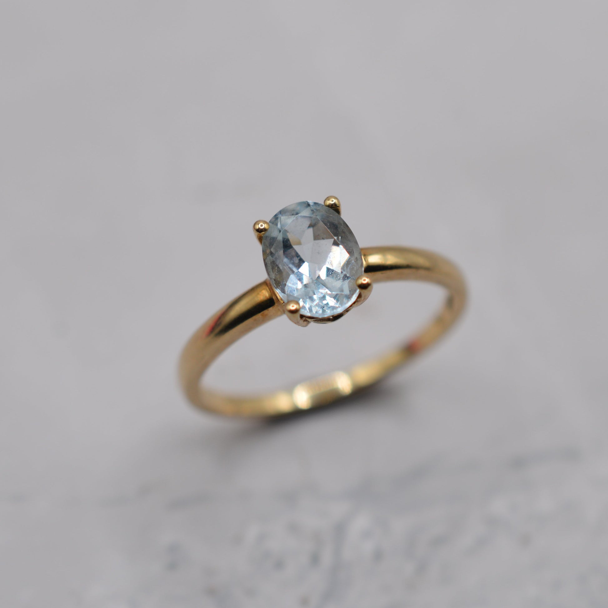Y2K 9ct Gold Aquamarine Solitaire Ring
