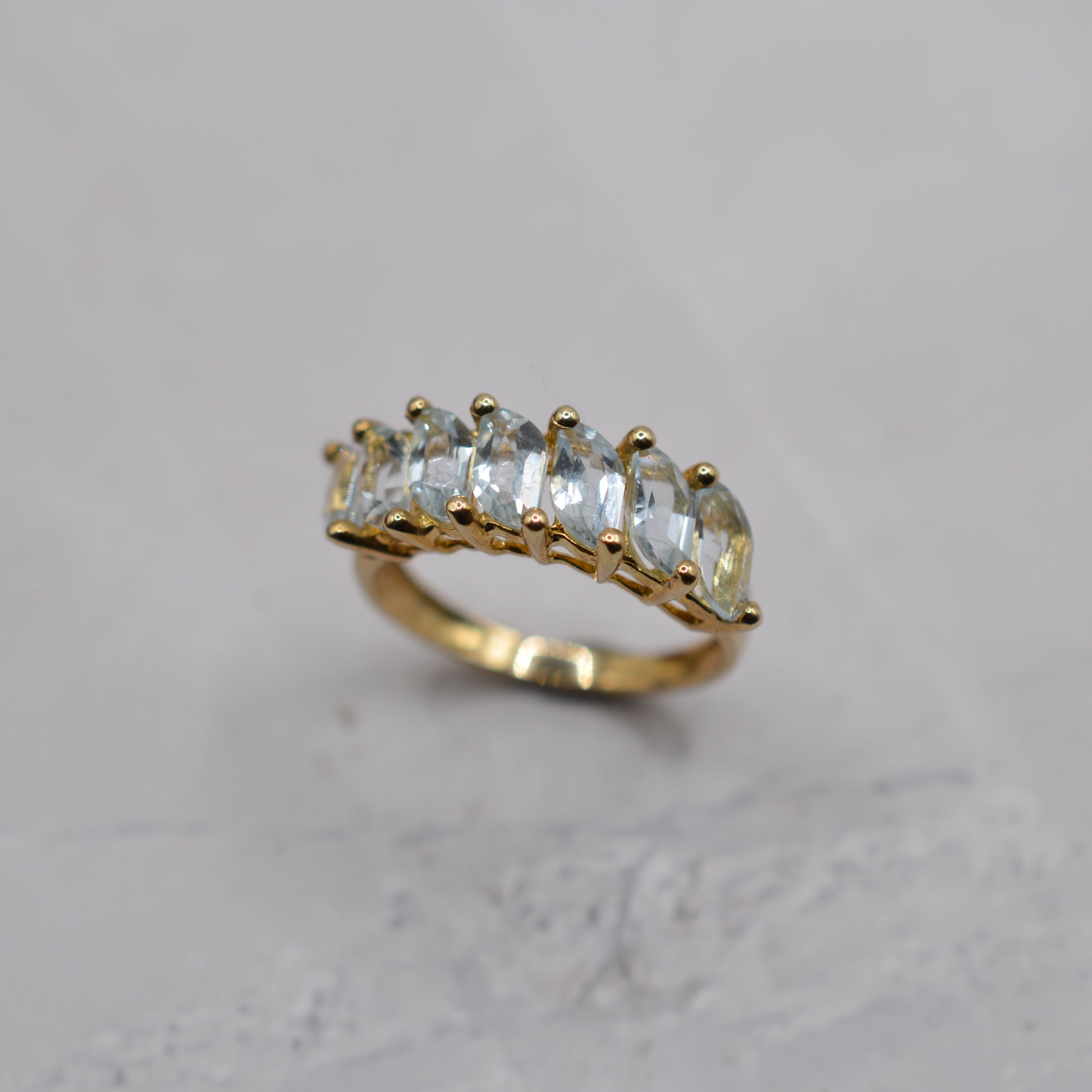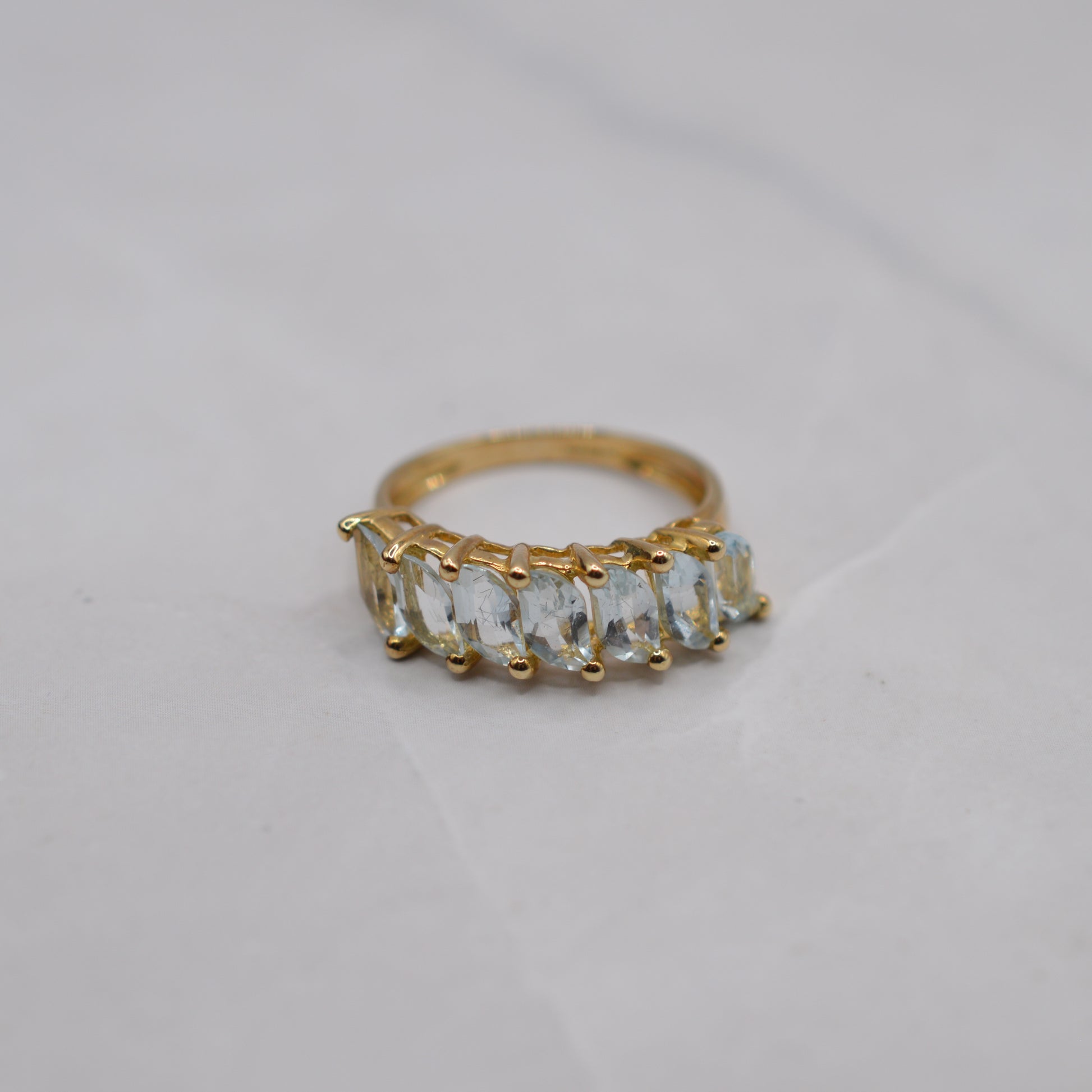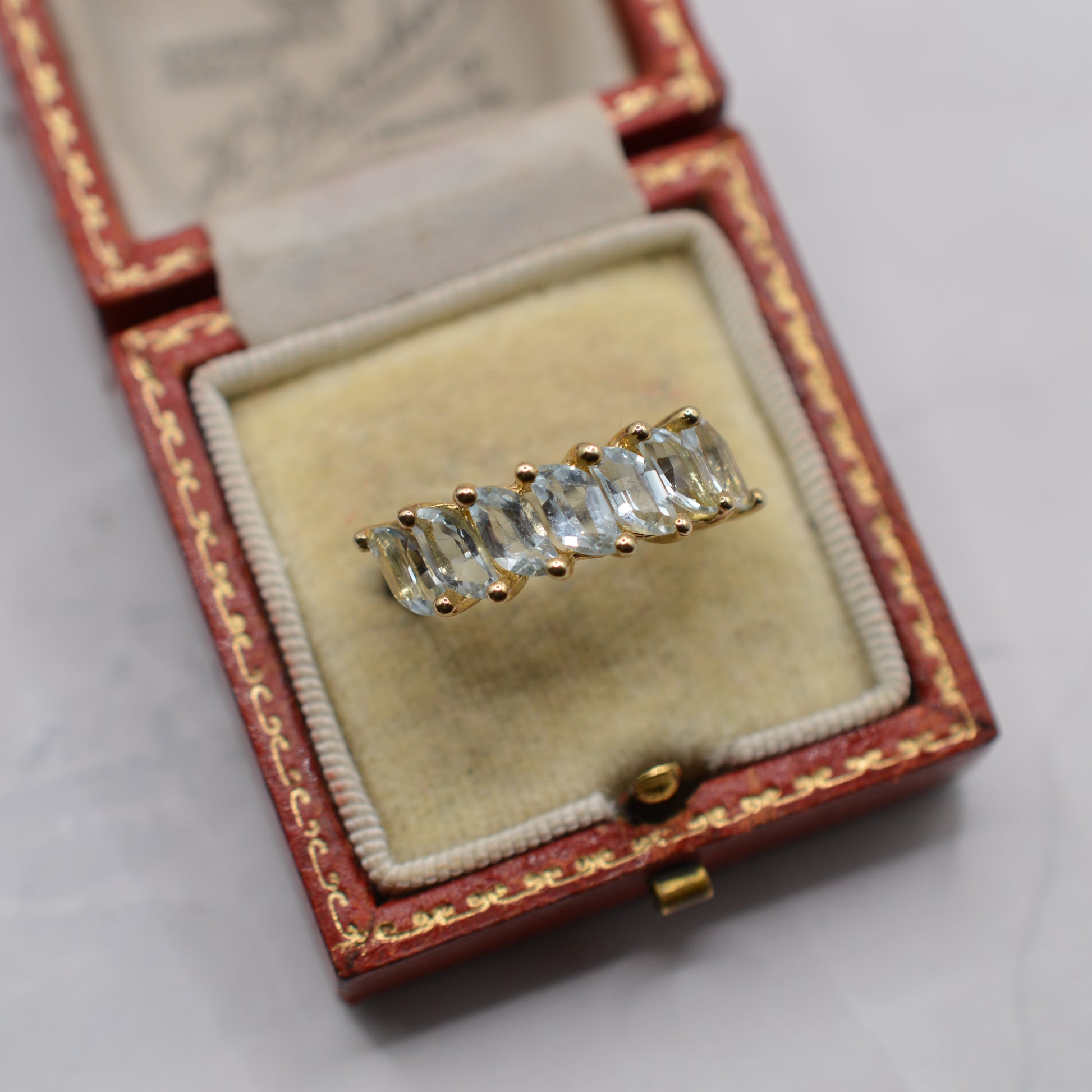 Y2K 9ct Gold Aquamarine Seven-Stone Half-Eternity Ring