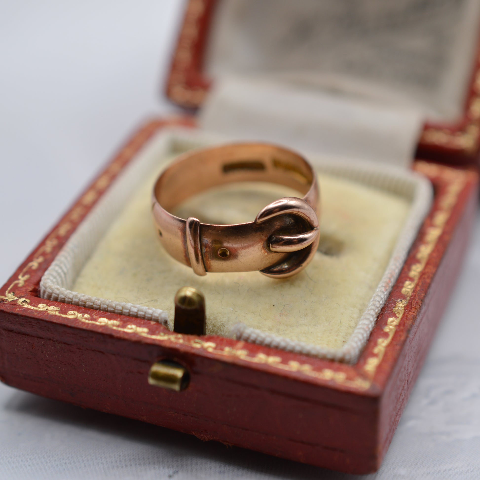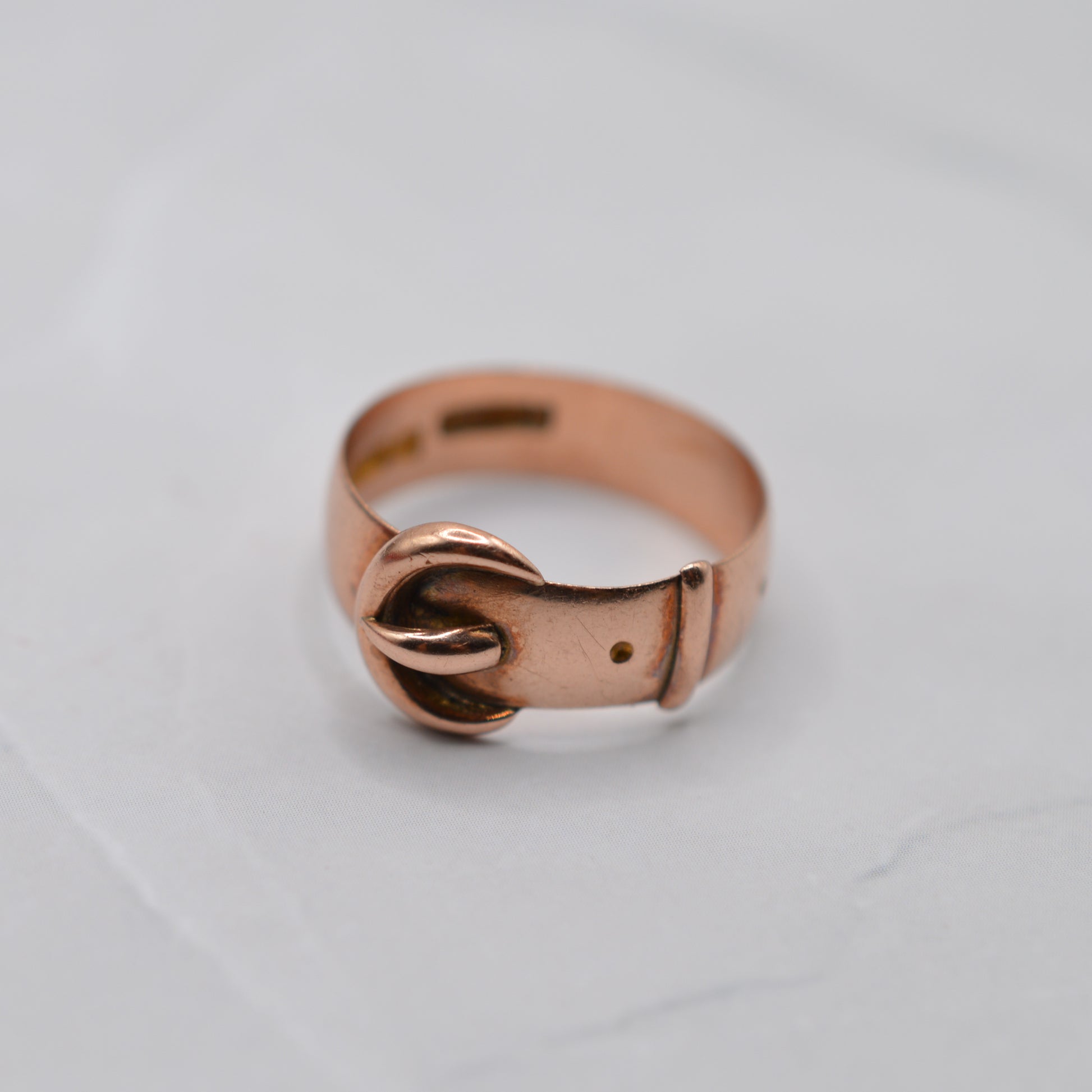 Antique 1912 Edwardian 9ct Rose Gold Buckle Ring