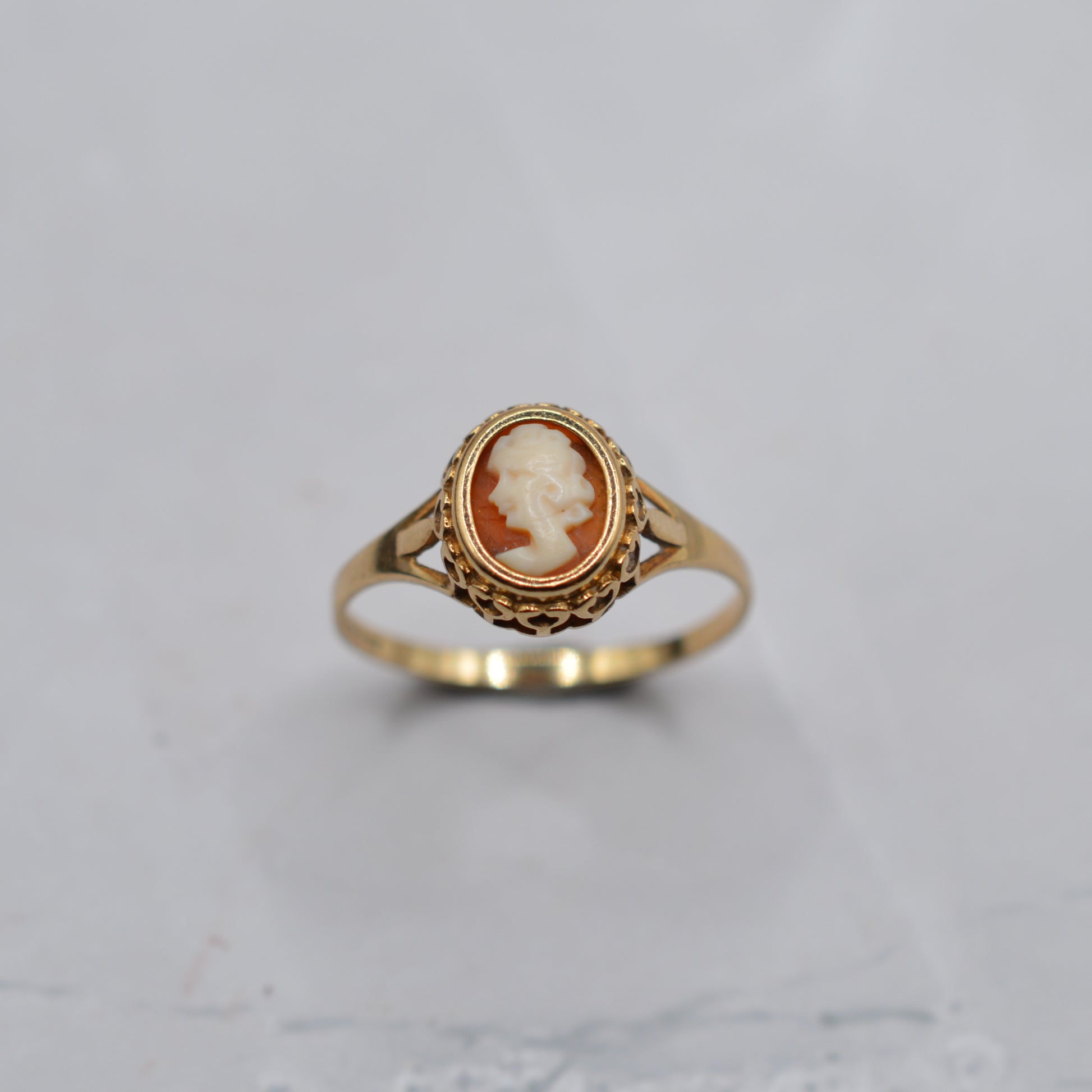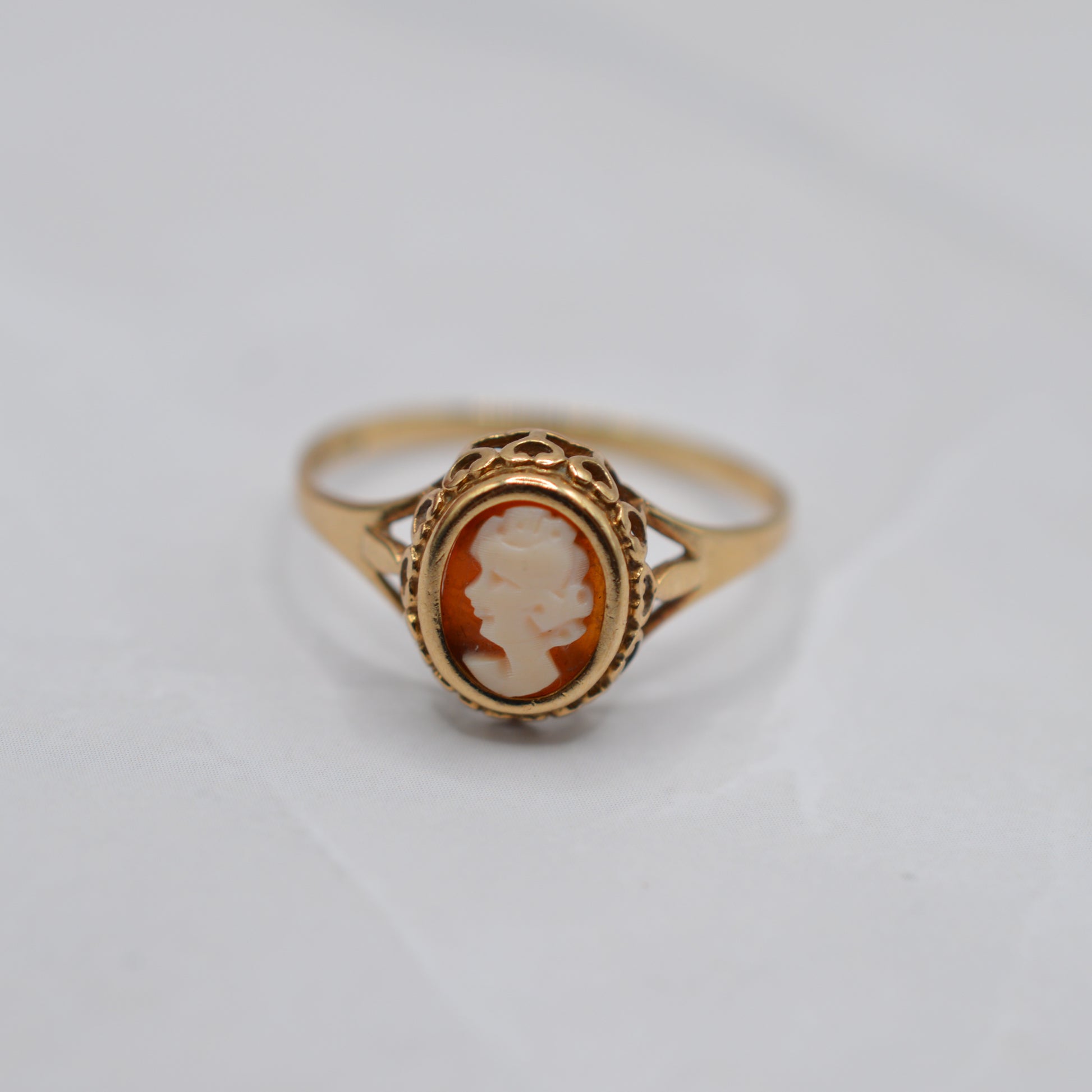 1980s Vintage 9ct Gold Cameo Ring with Pierced Gallery