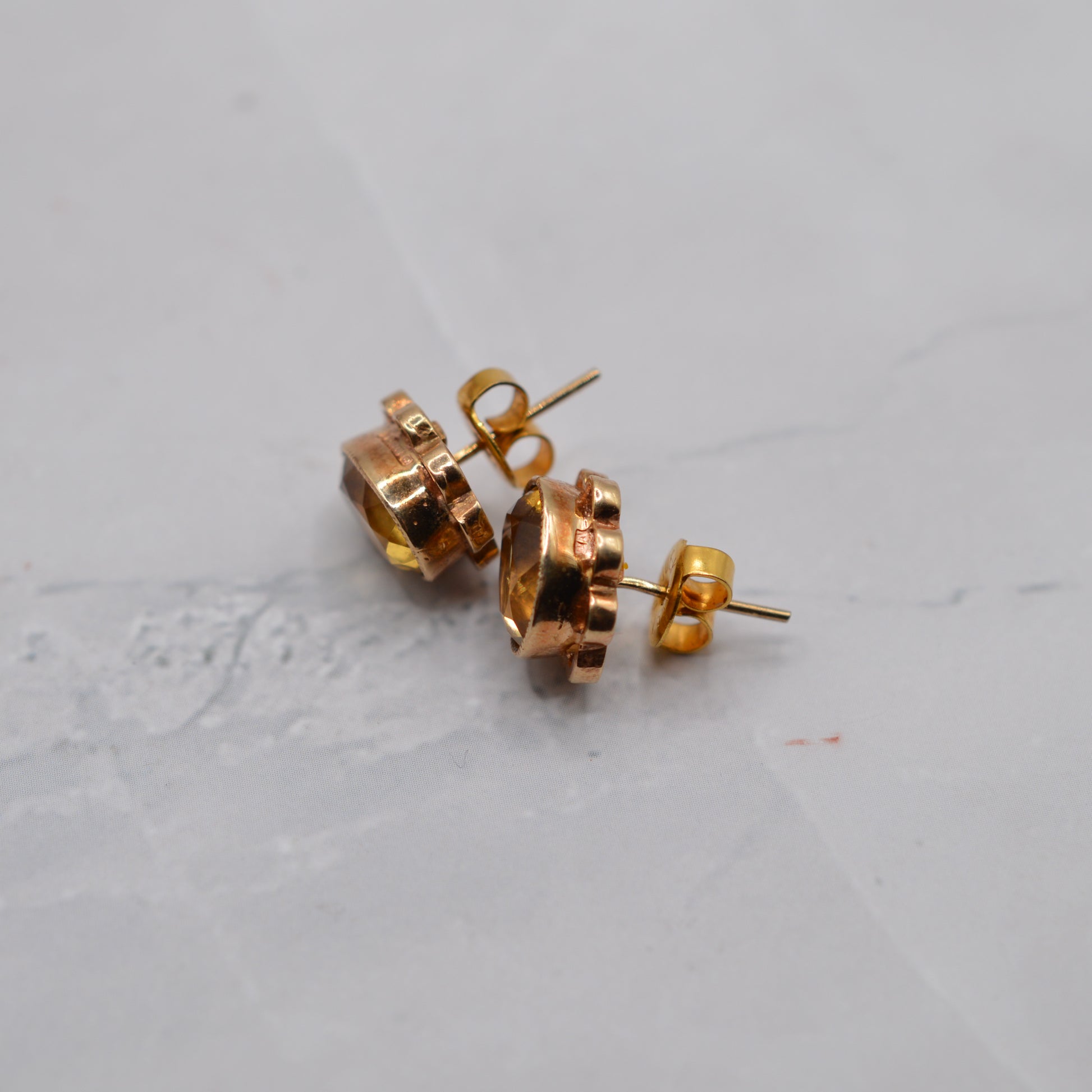 1979 Vintage 9ct Gold Citrine Stud Earrings with Scallop Edge