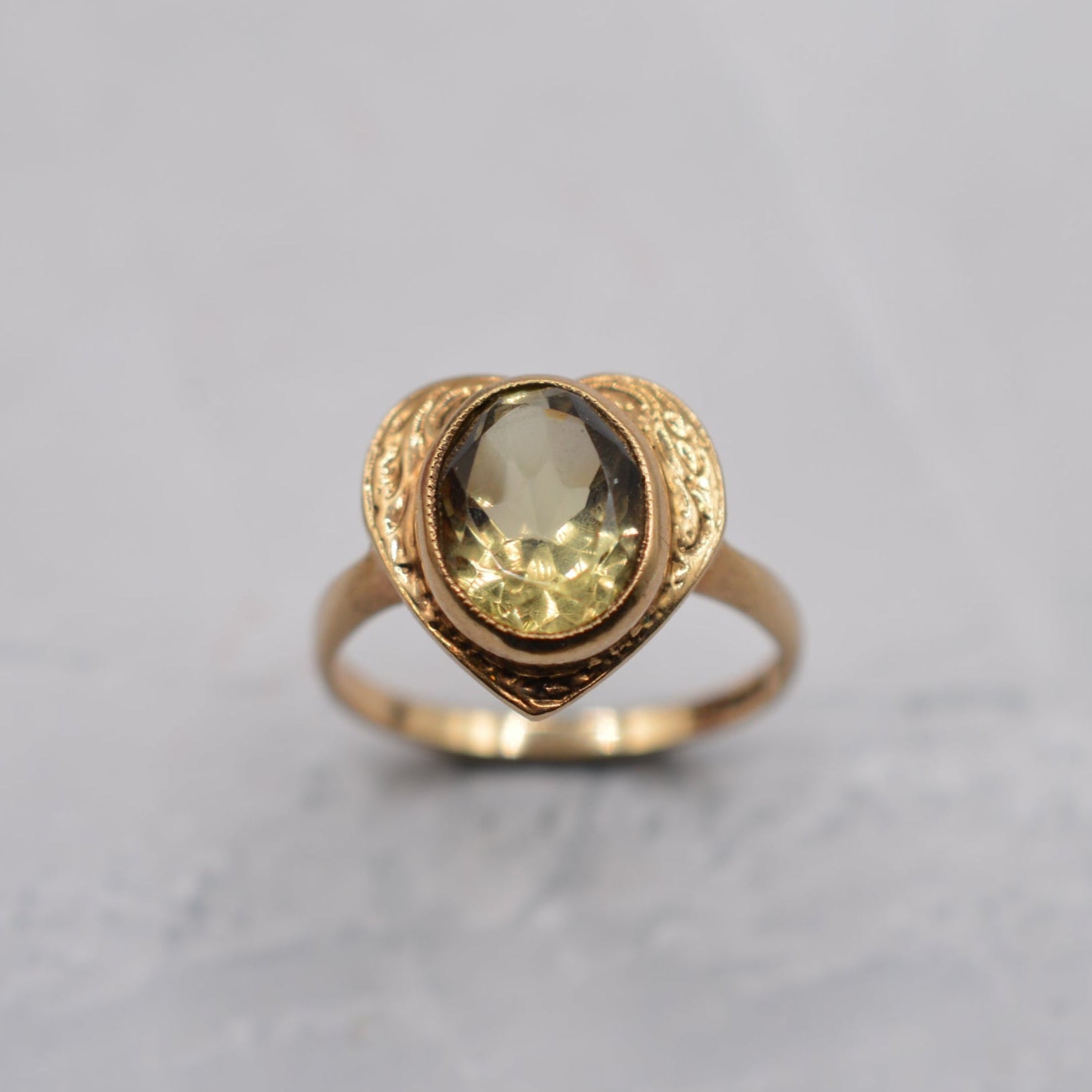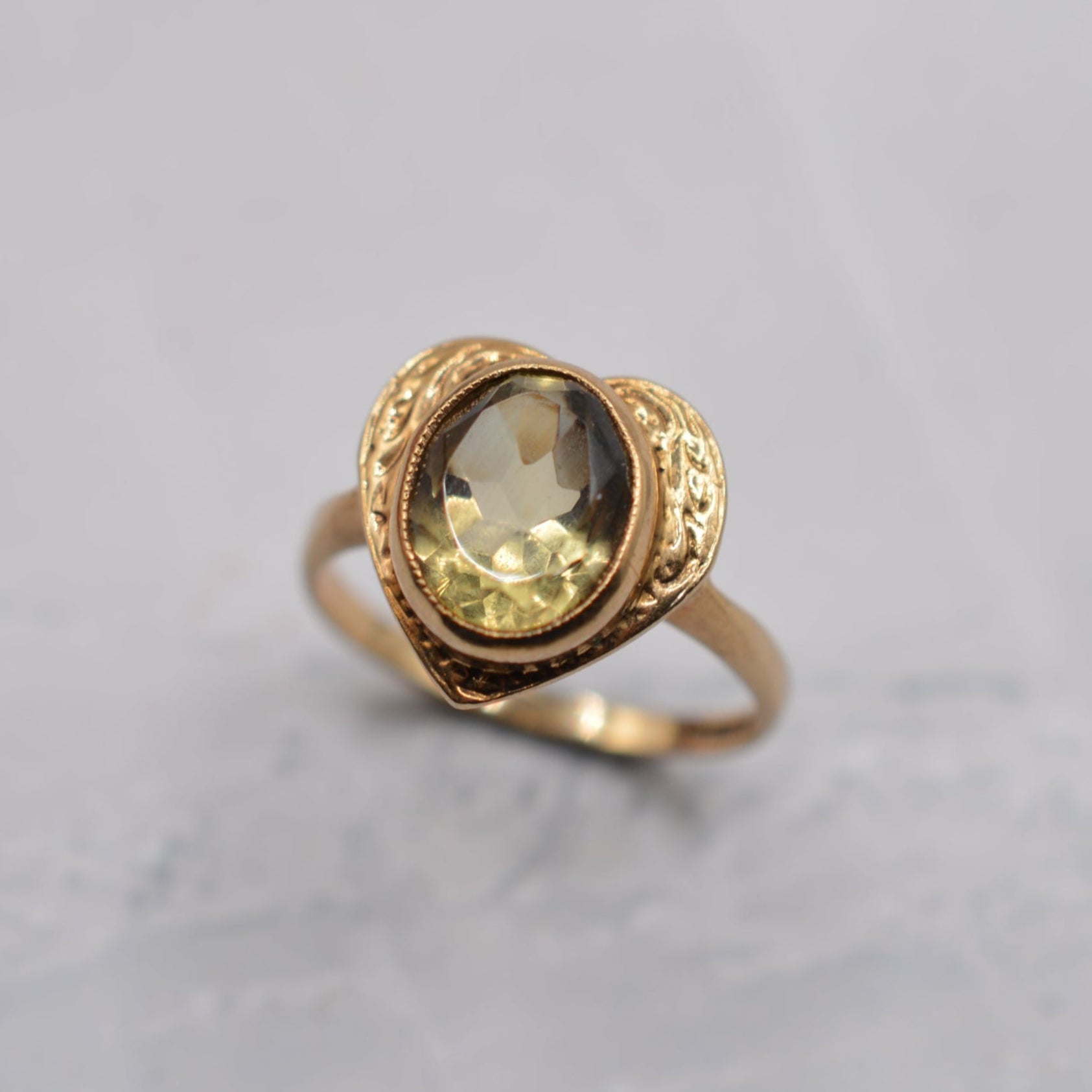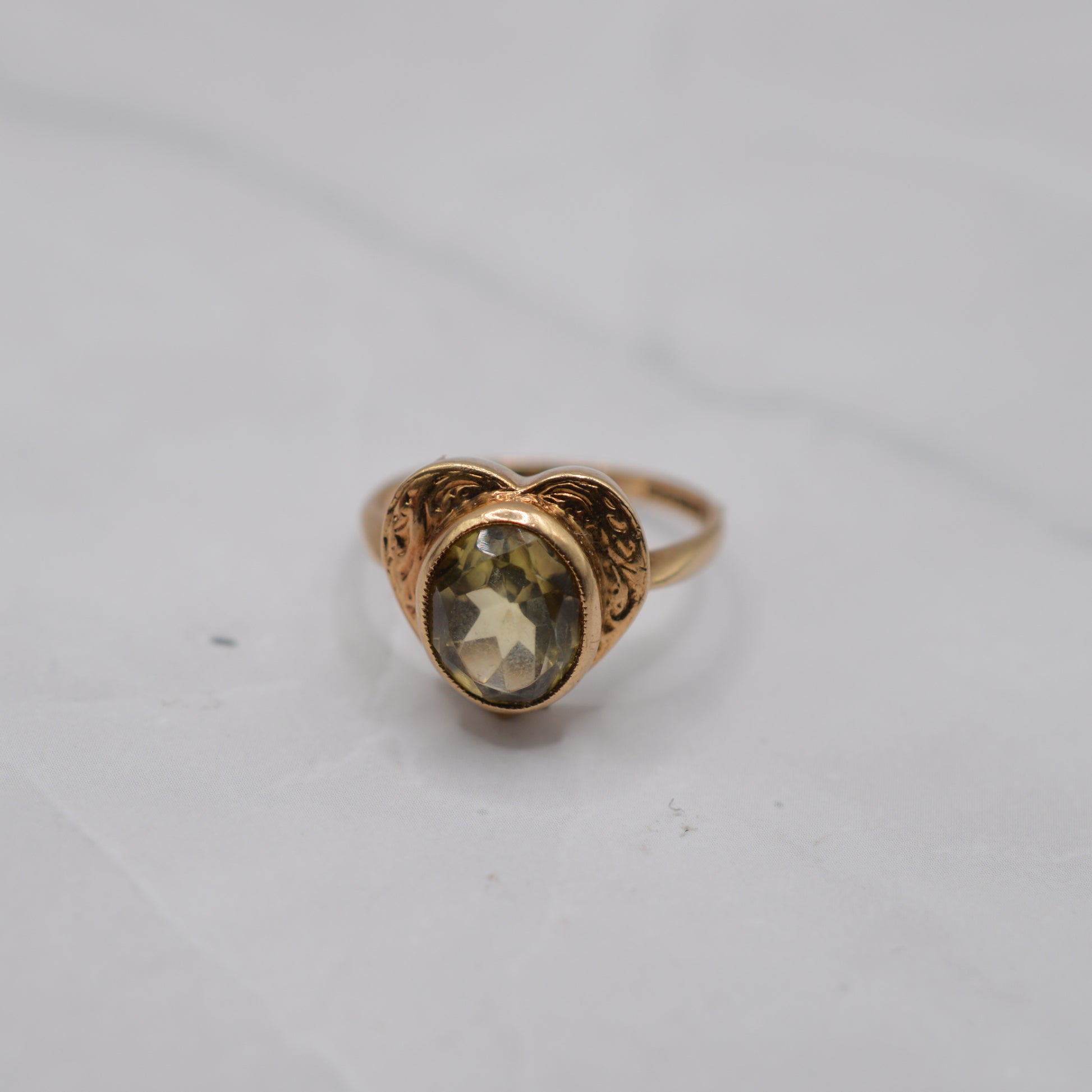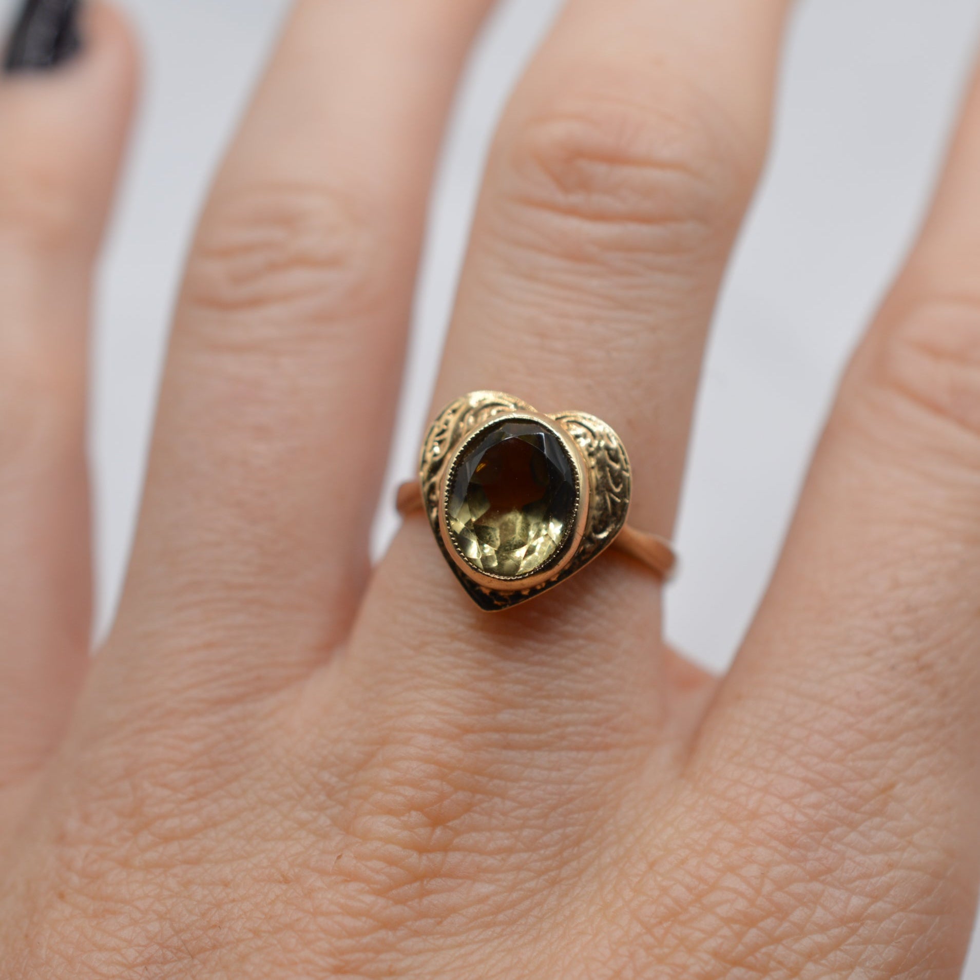 1970s Chunky Vintage 9ct Gold Citrine Heart Ring