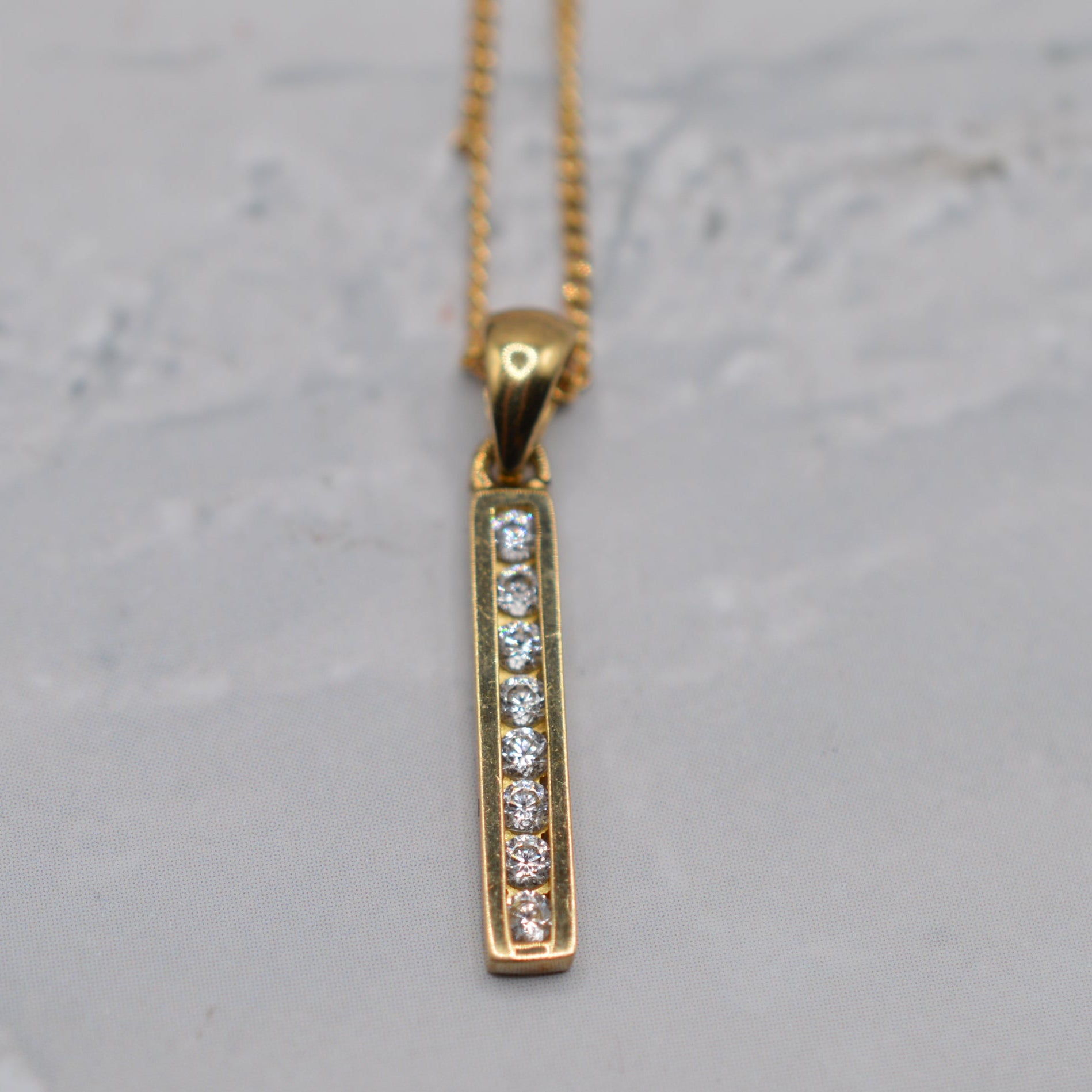9ct Gold Cubic Zirconia Bar Pendant Necklace (18")