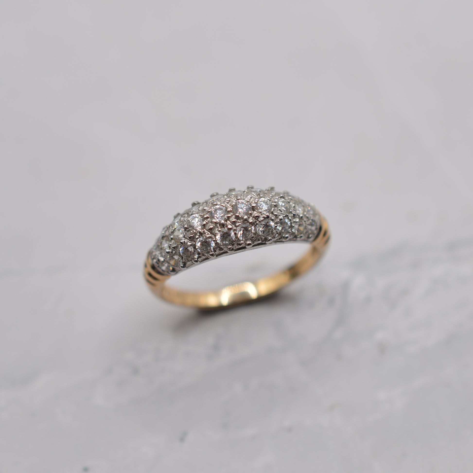 A very pretty 9ct gold cubic zirconia dome ring. This lovely chunky design features a wide-domed top encrusted with three rows of bright, sparkly cubic zirconia, giving plenty of sparkle from every angle. The dome itself is finished in white gold to beautifully complement the stones, while the shoulders are crafted in rich yellow gold with ribbed detailing on the shoulders.