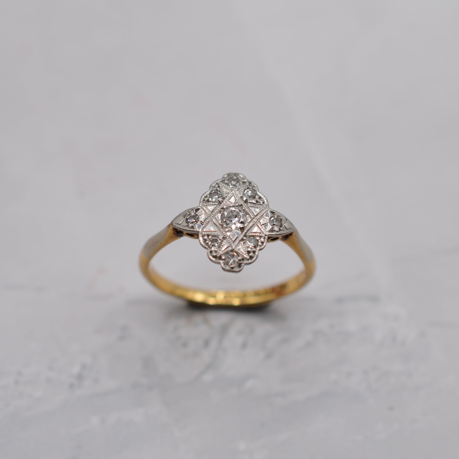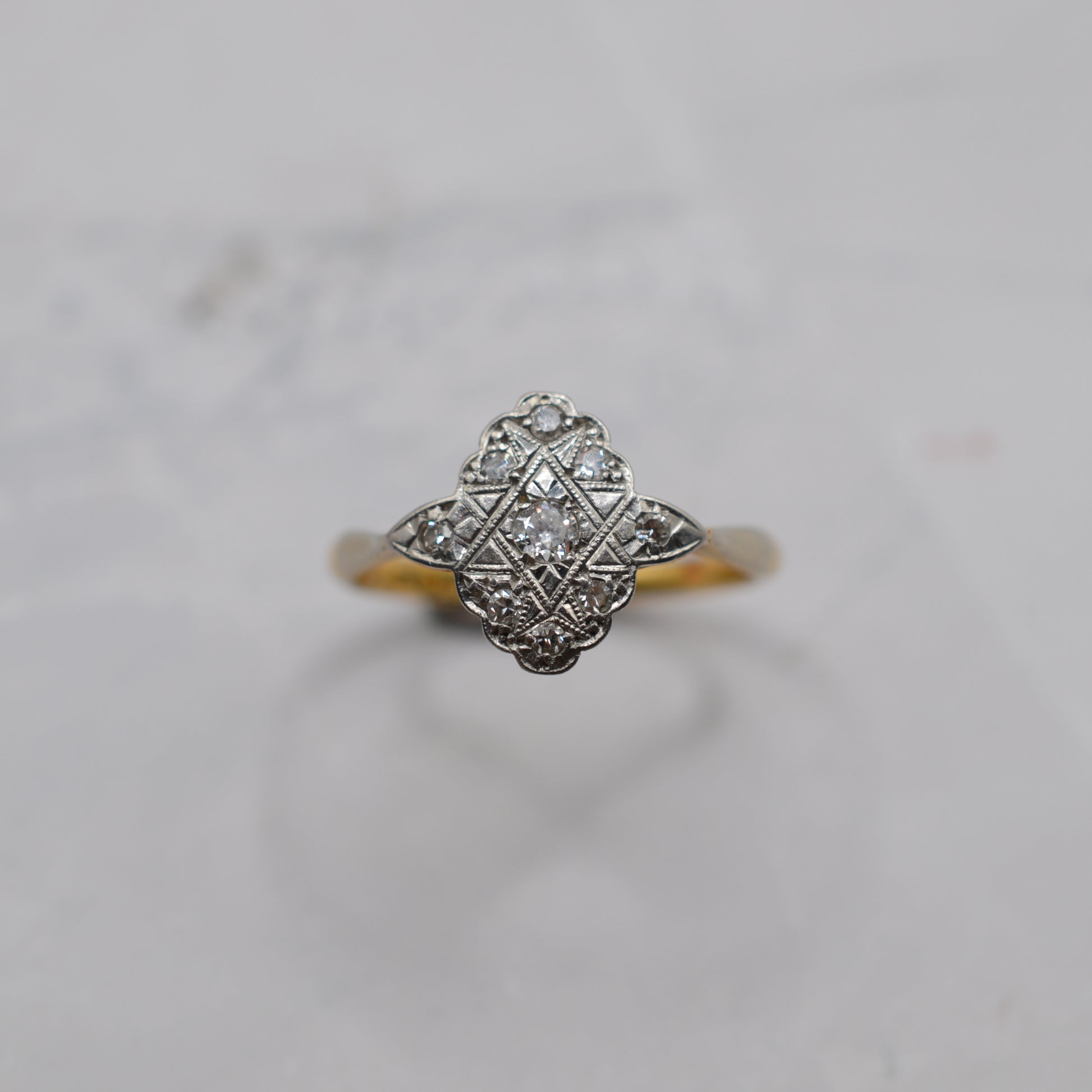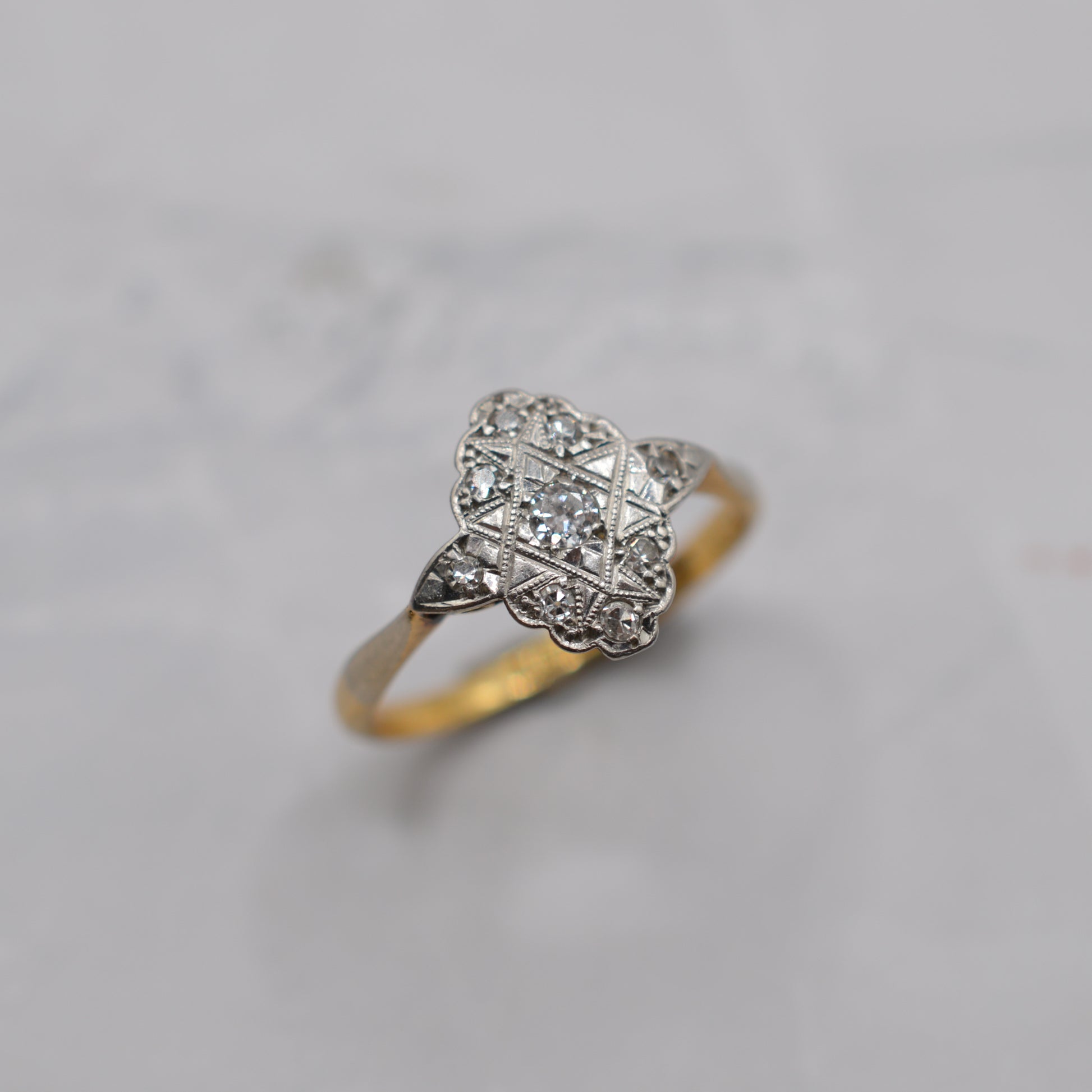 Antique Art Deco 18ct Gold & Platinum Diamond Cluster Ring