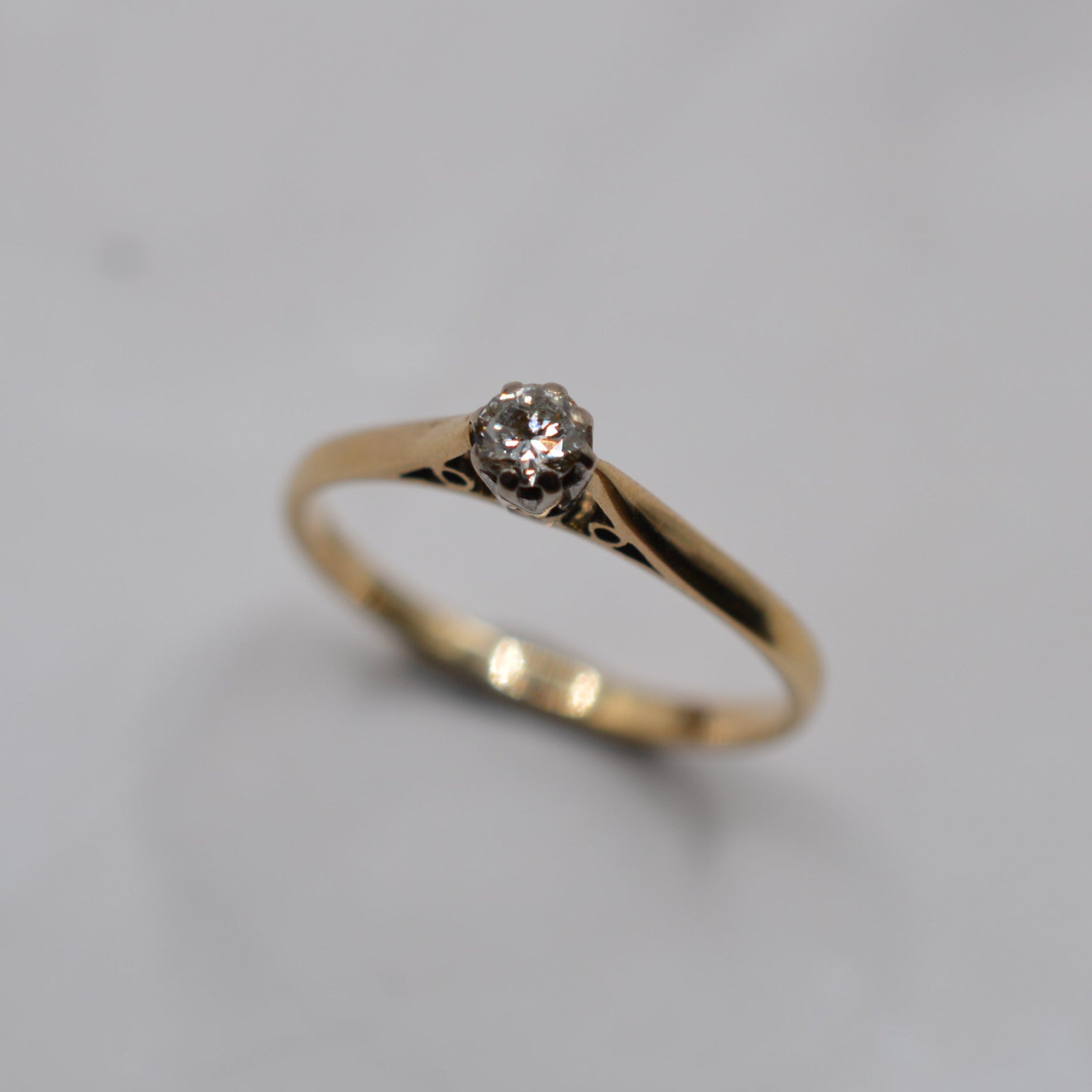 1980s Vintage 9ct Gold Diamond Solitaire Ring