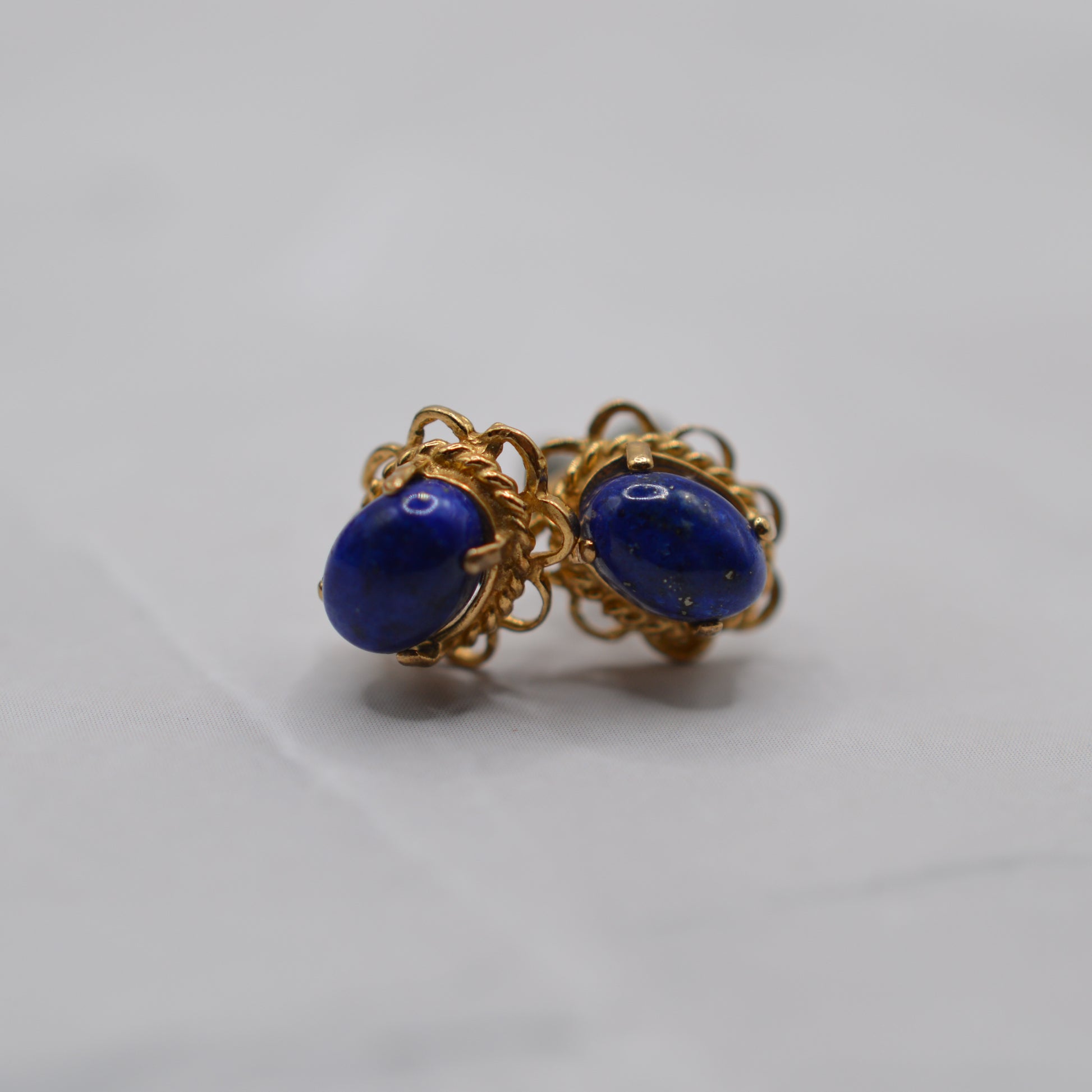 Vintage 9ct Gold Lapis Lazuli Earrings with Scallop Edge
