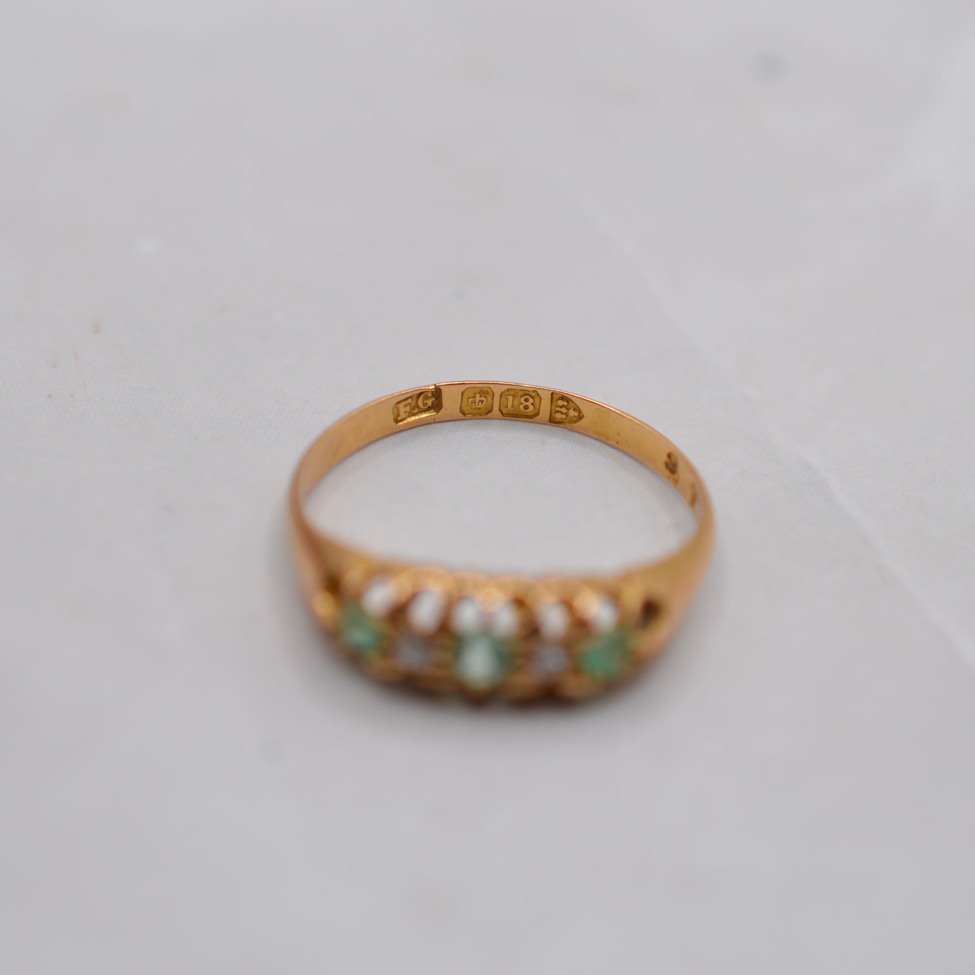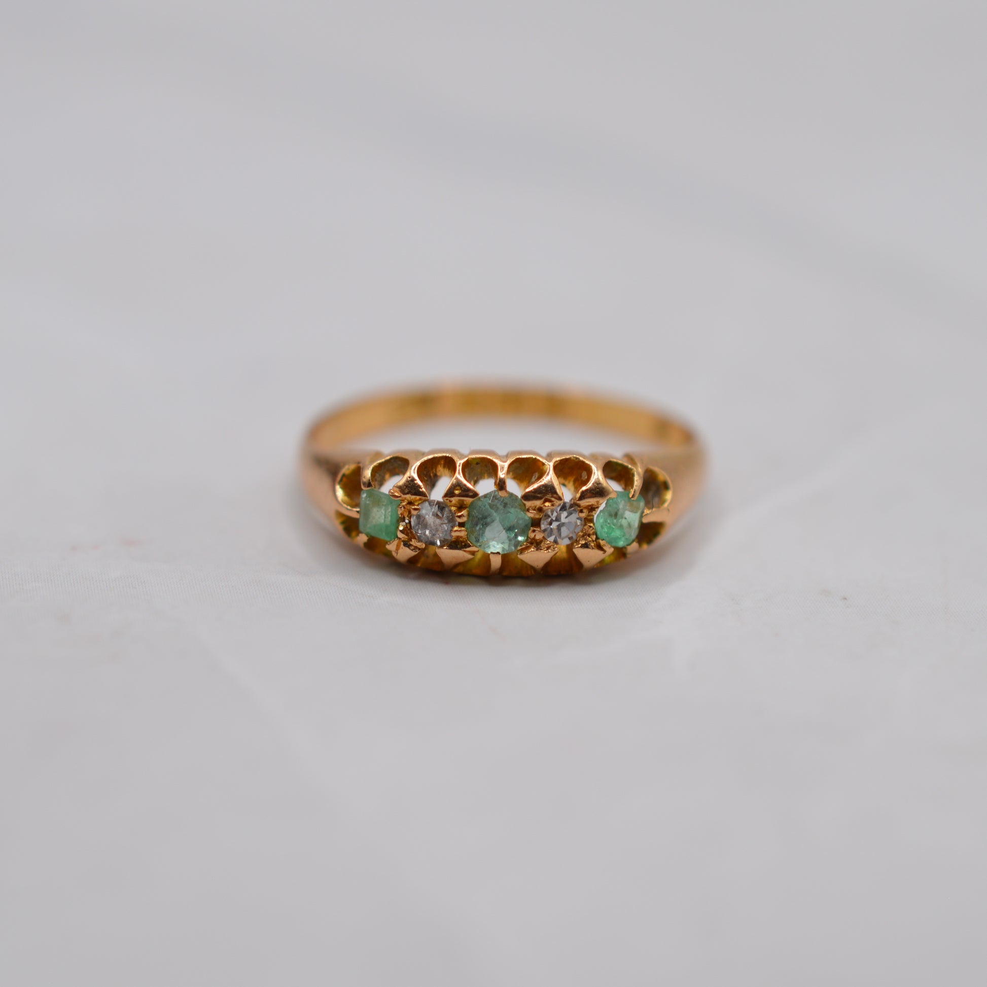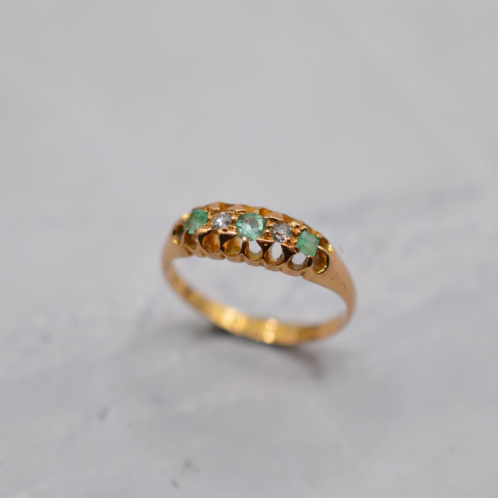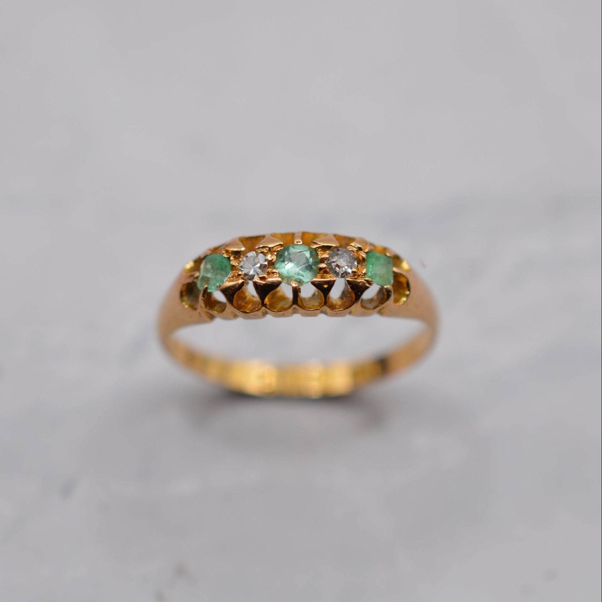 Antique 18ct Gold Emerald & Diamond Five-Stone Ring