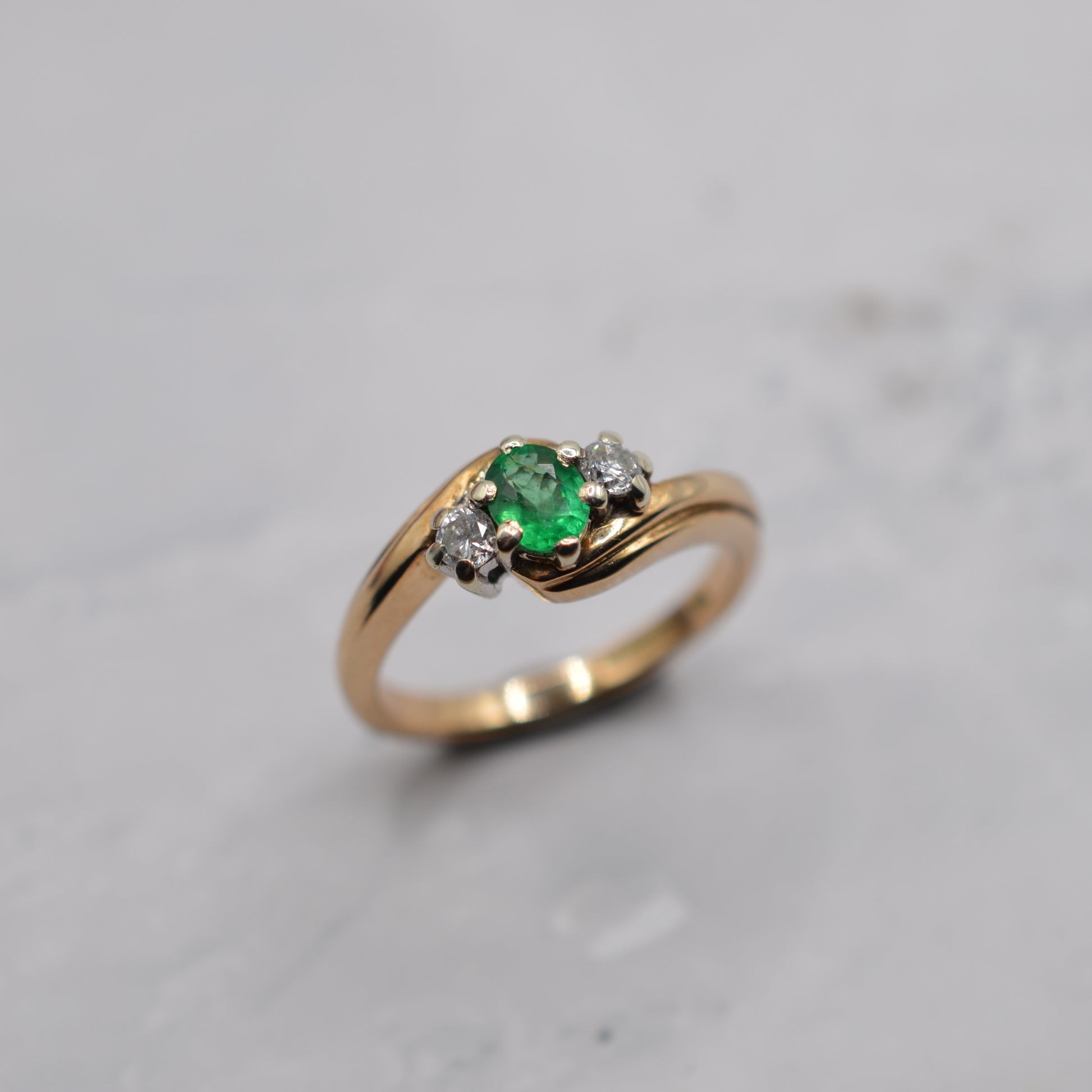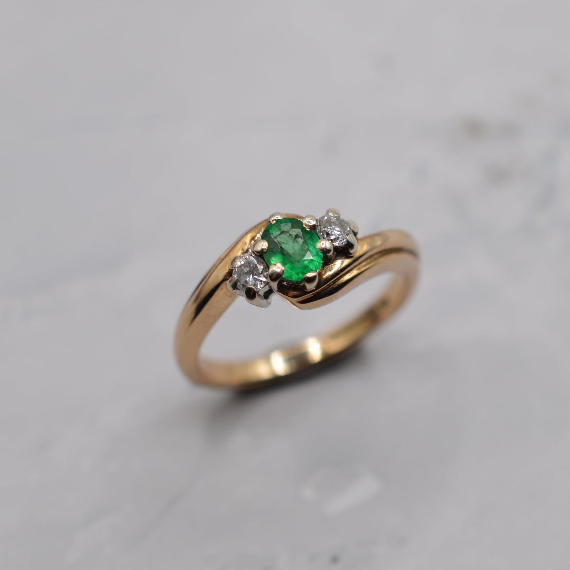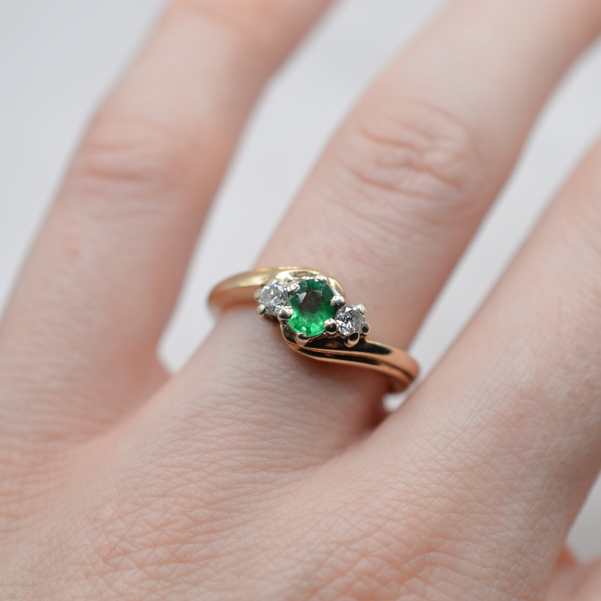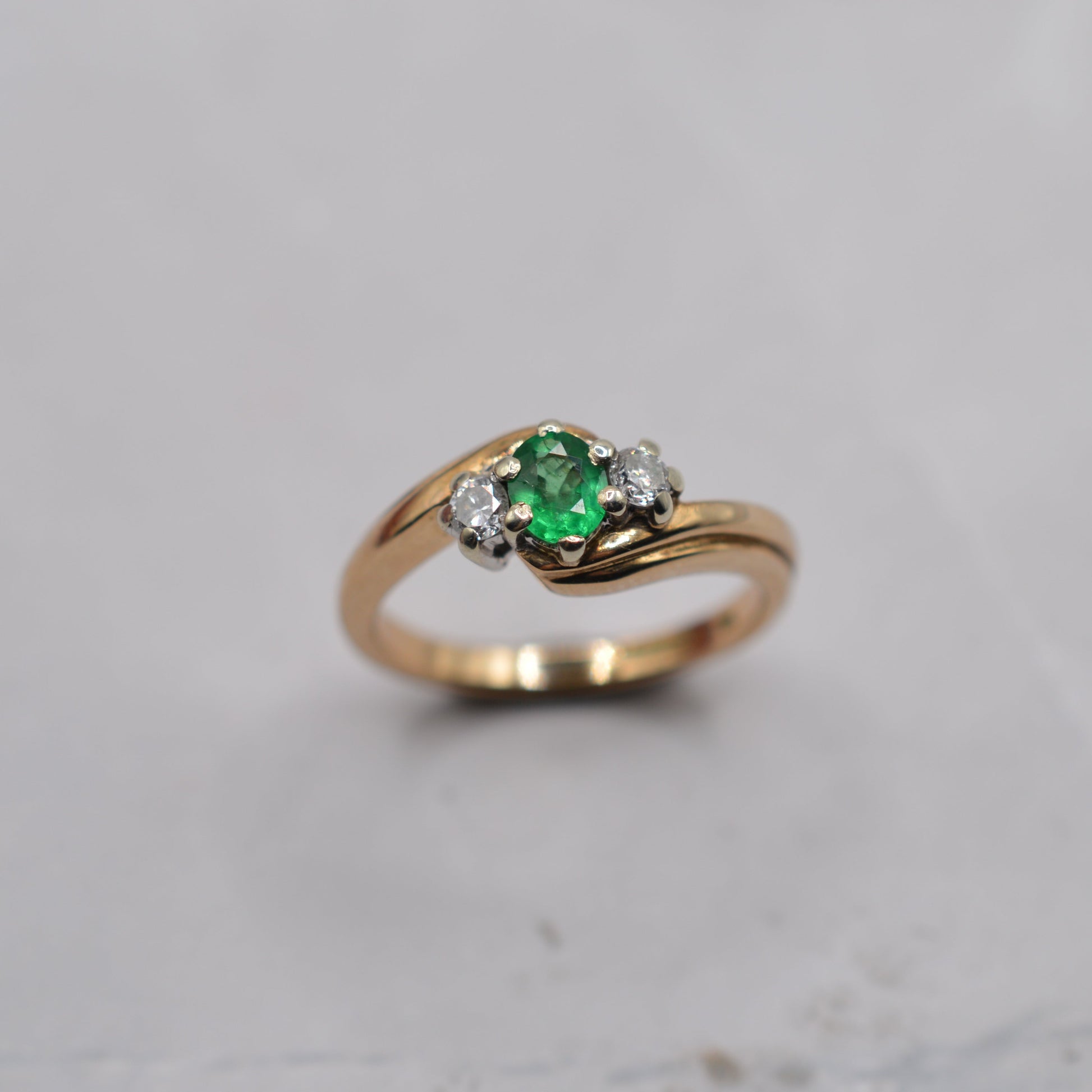 9ct Gold Emerald & Diamond Crossover Trilogy Ring