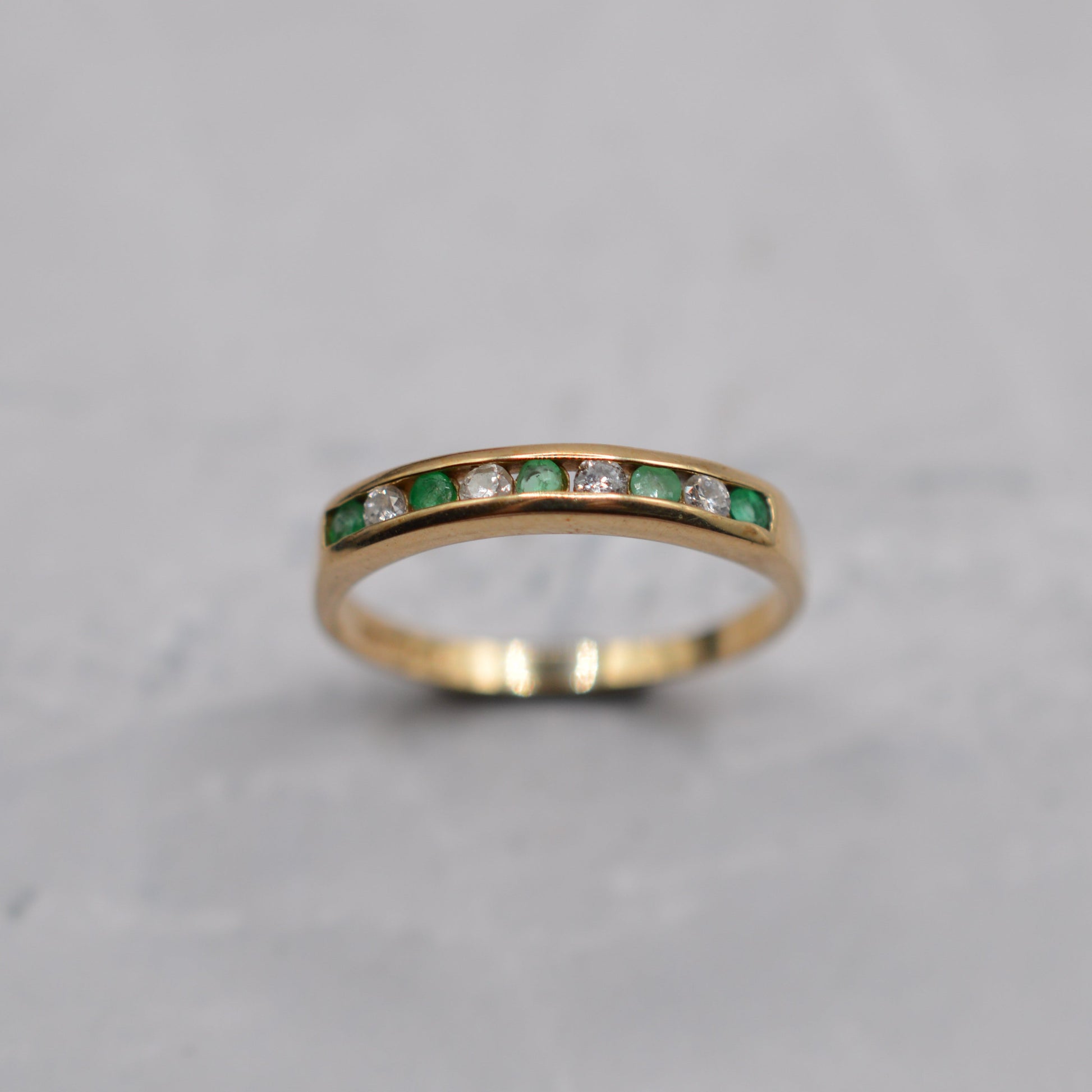 1990s 9ct Gold Emerald & Diamond Half-Eternity Ring