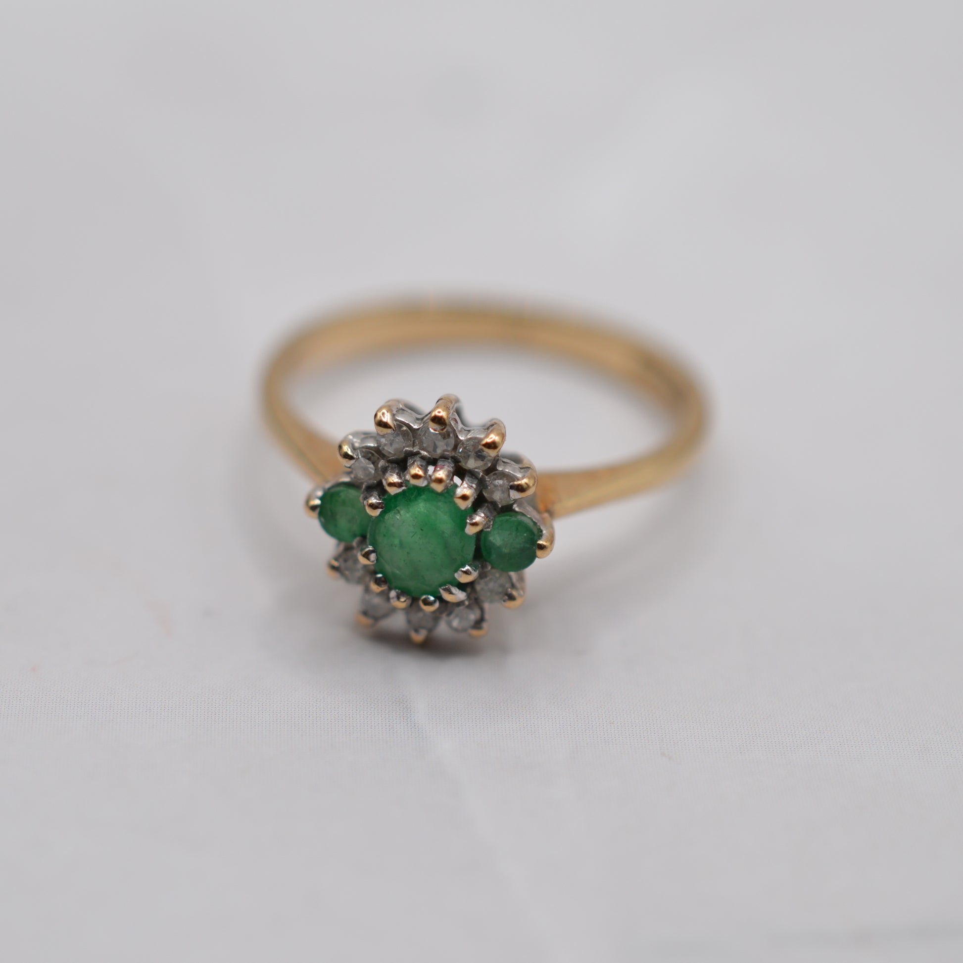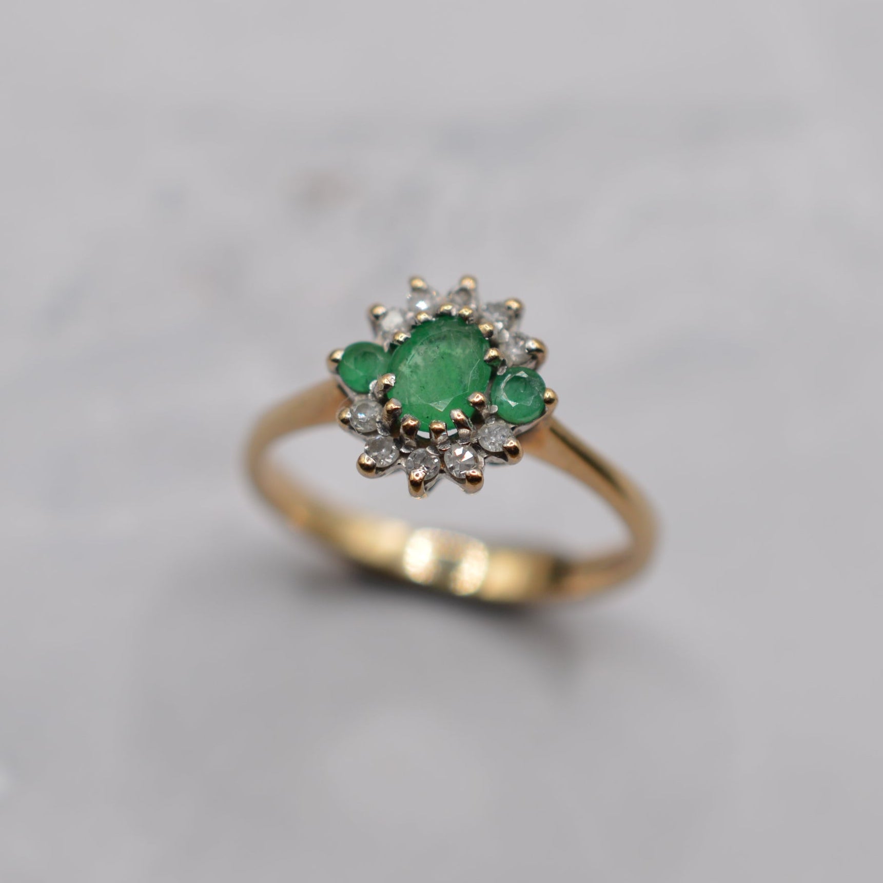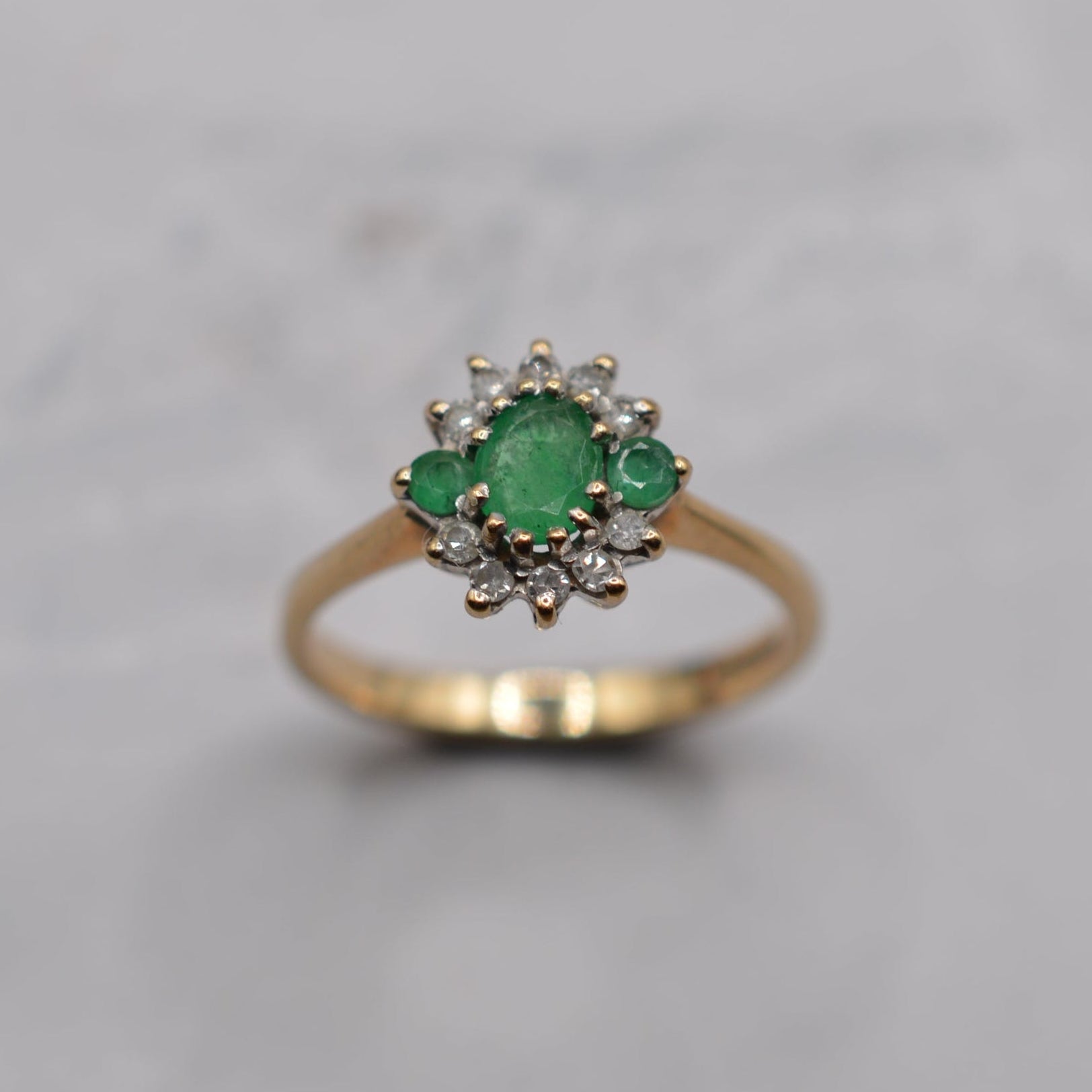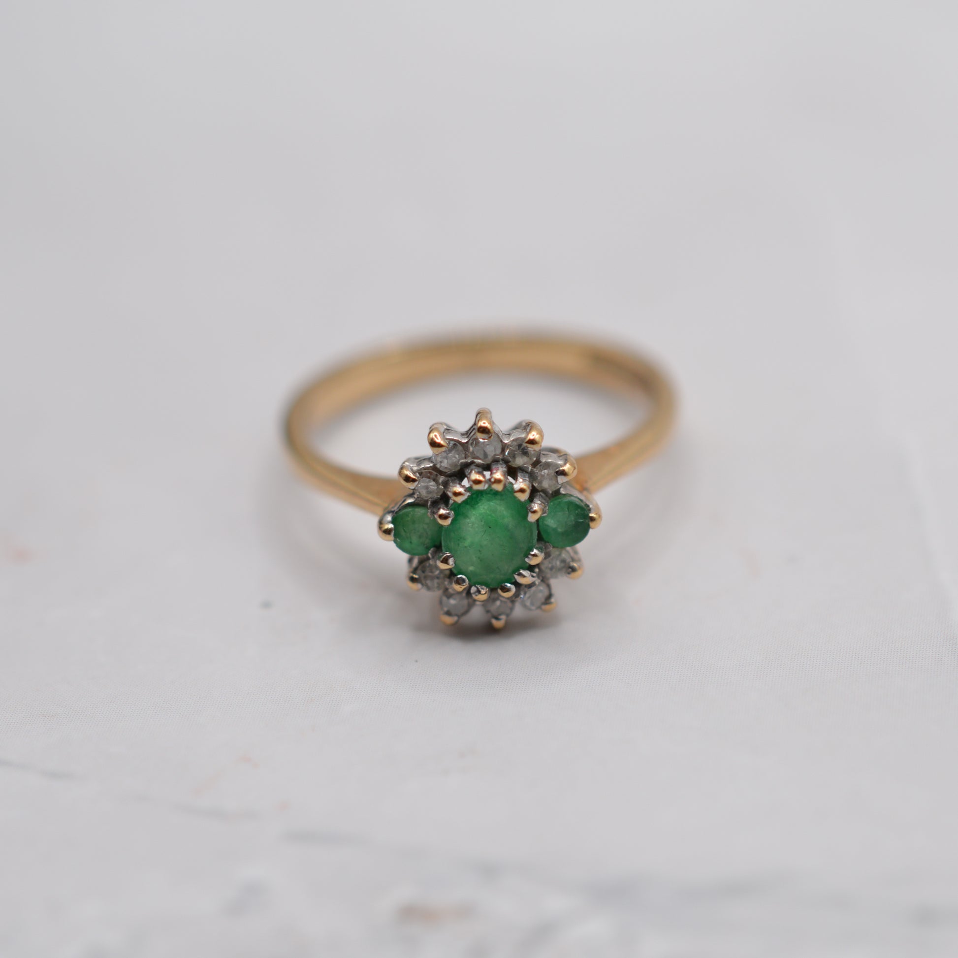1990s 9ct Gold Emerald & Diamond Cluster Ring