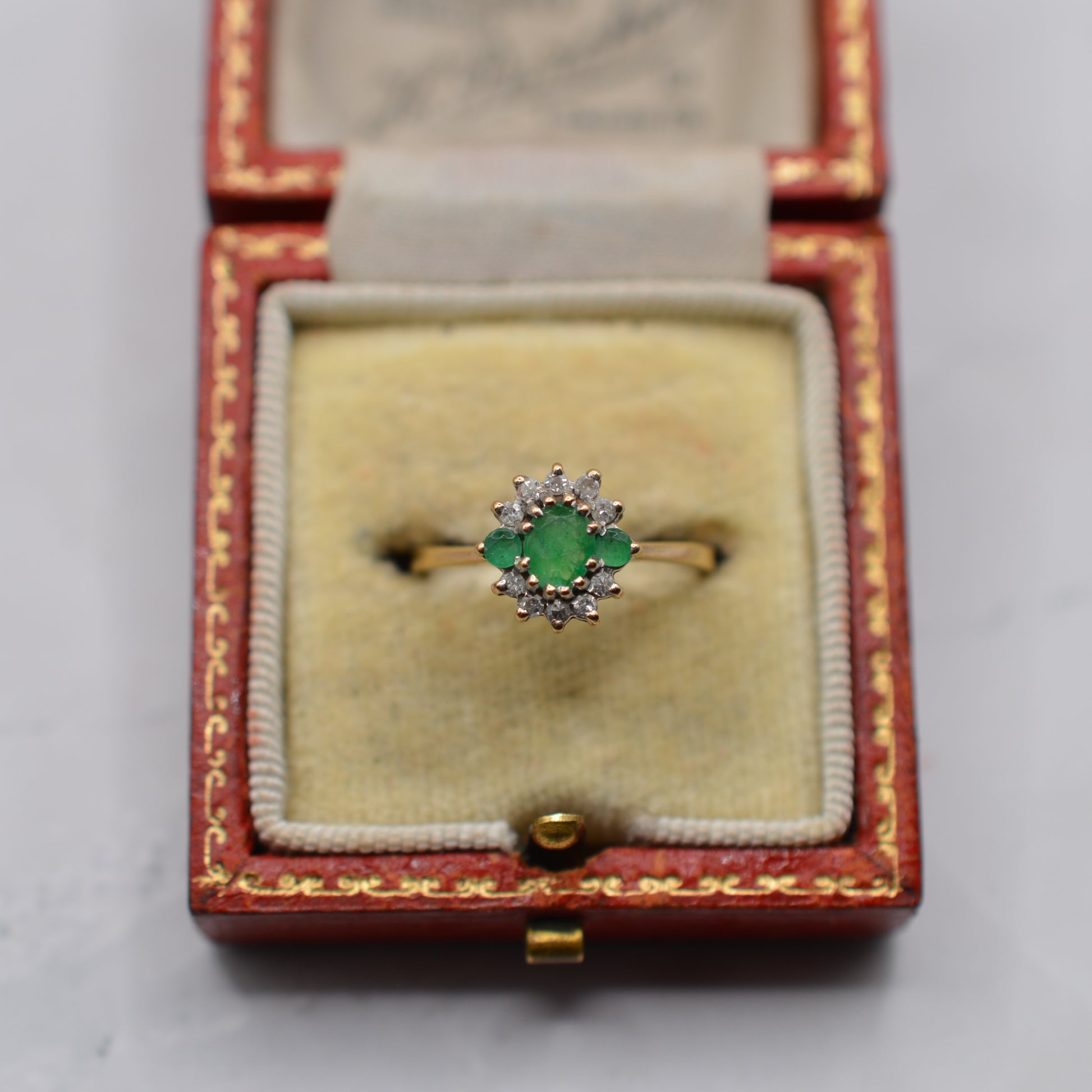 • Style: Emerald and diamond cluster ring