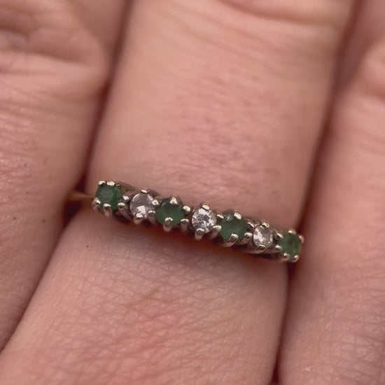 1980s Vintage 9ct Gold Emerald & Diamond Half-Eternity Ring
