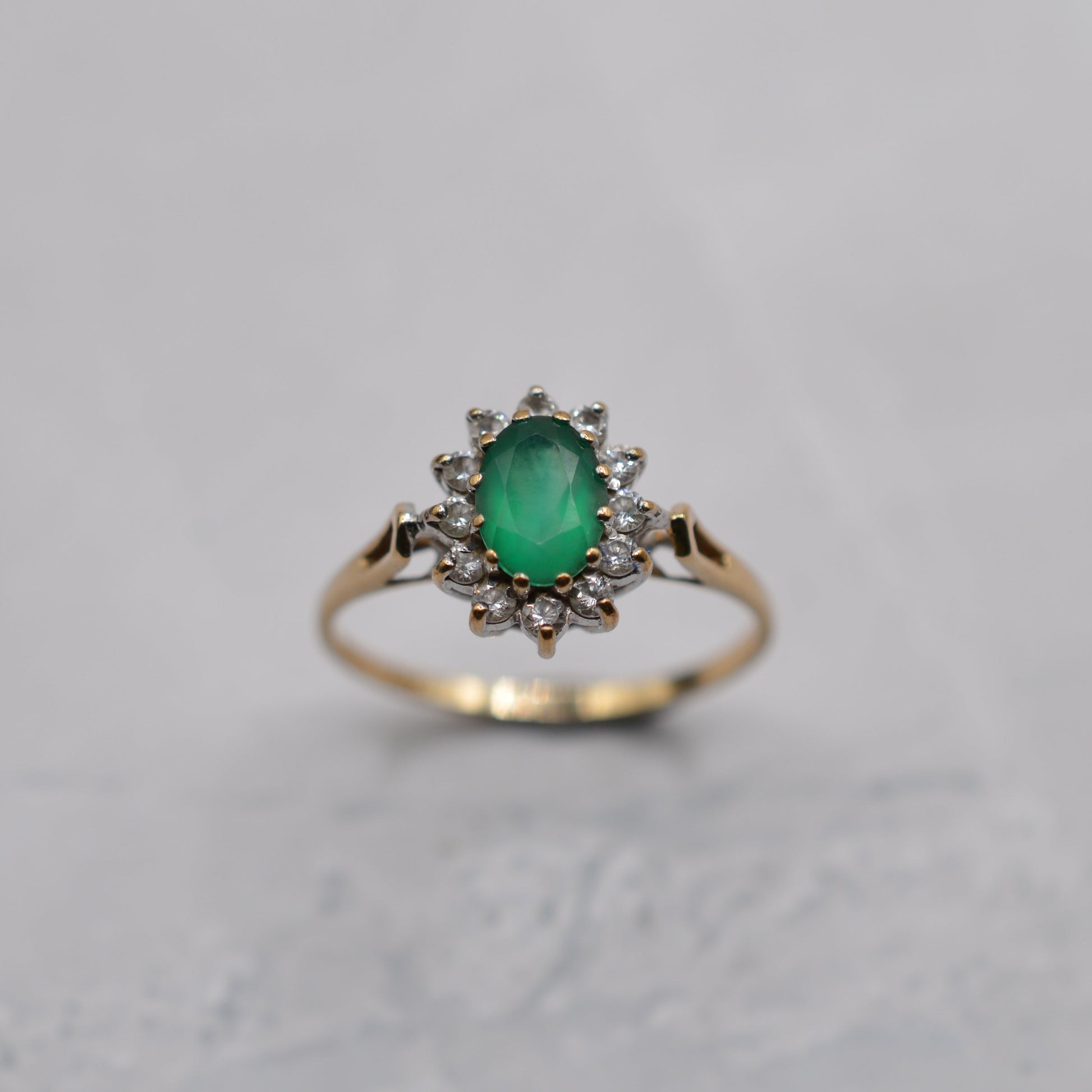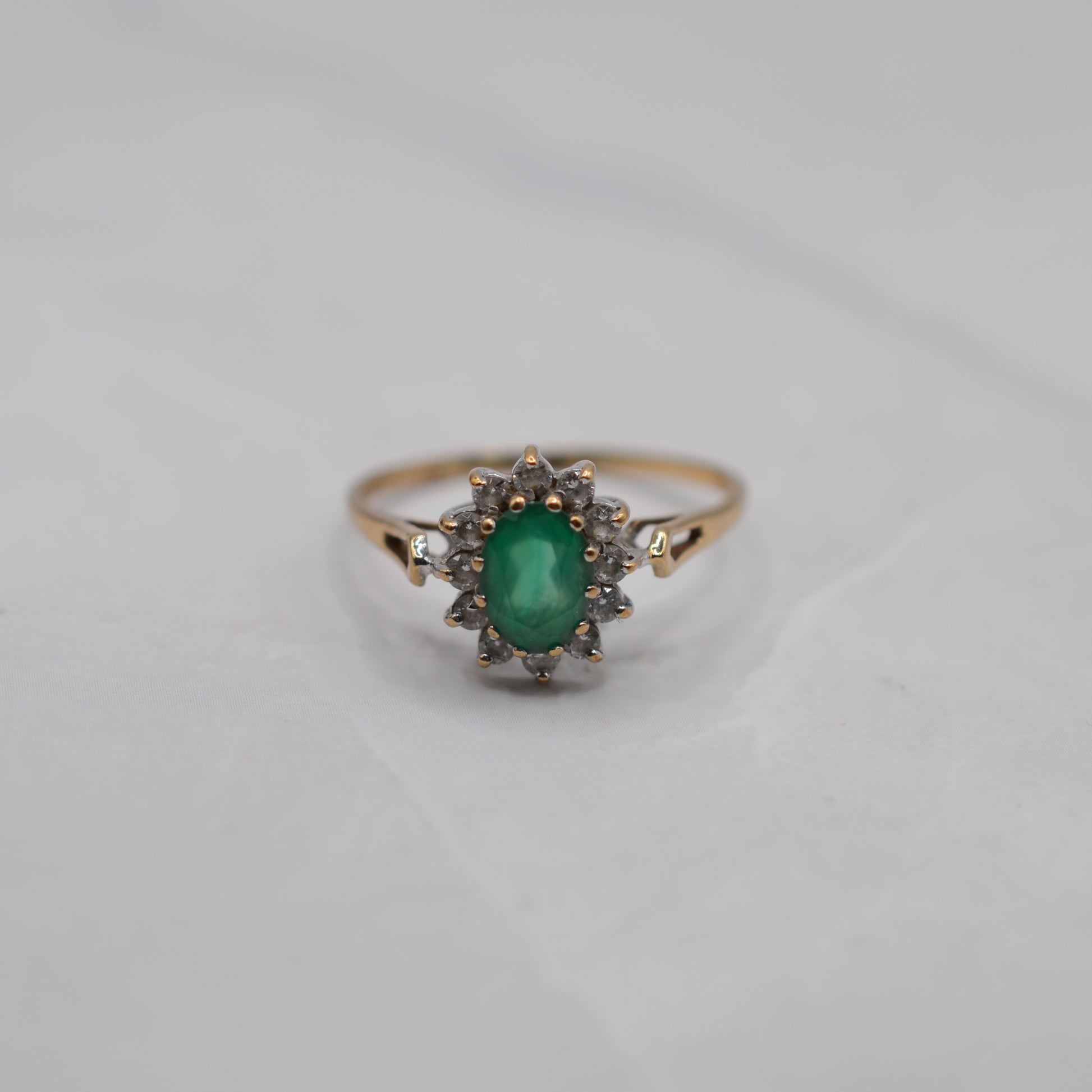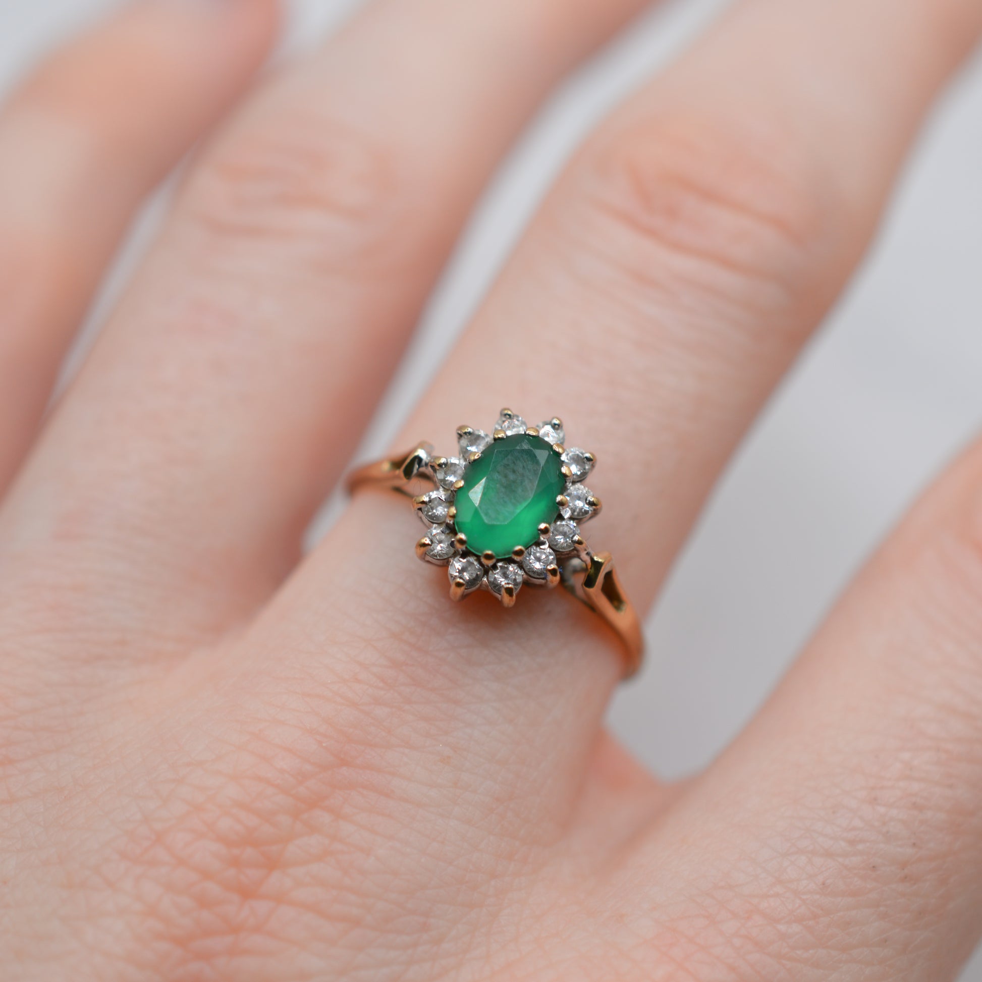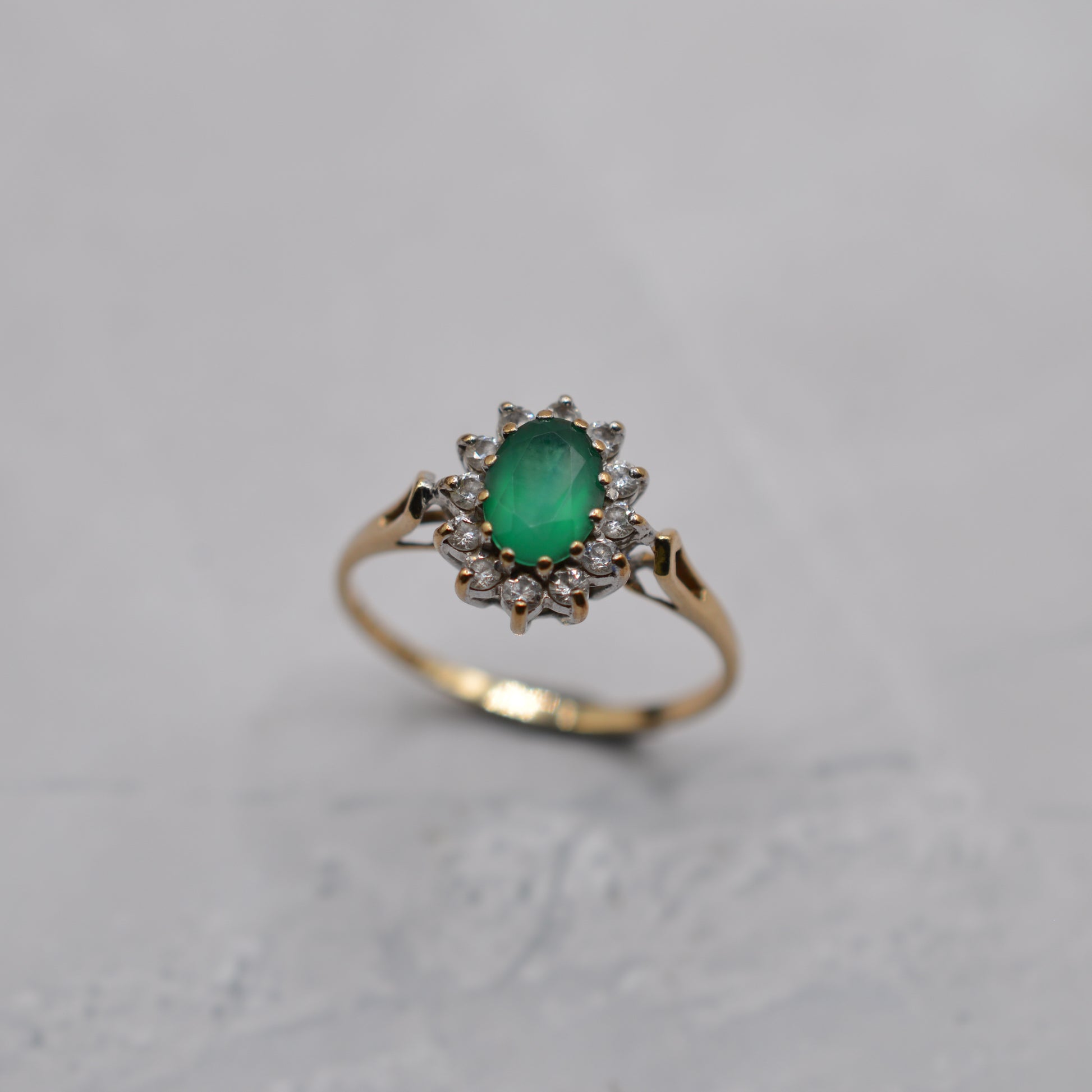 1980s 9ct Gold Emerald & CZ Cluster Ring