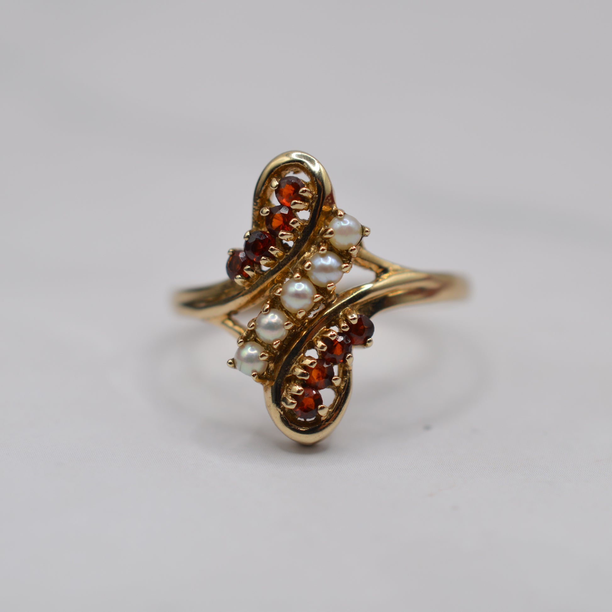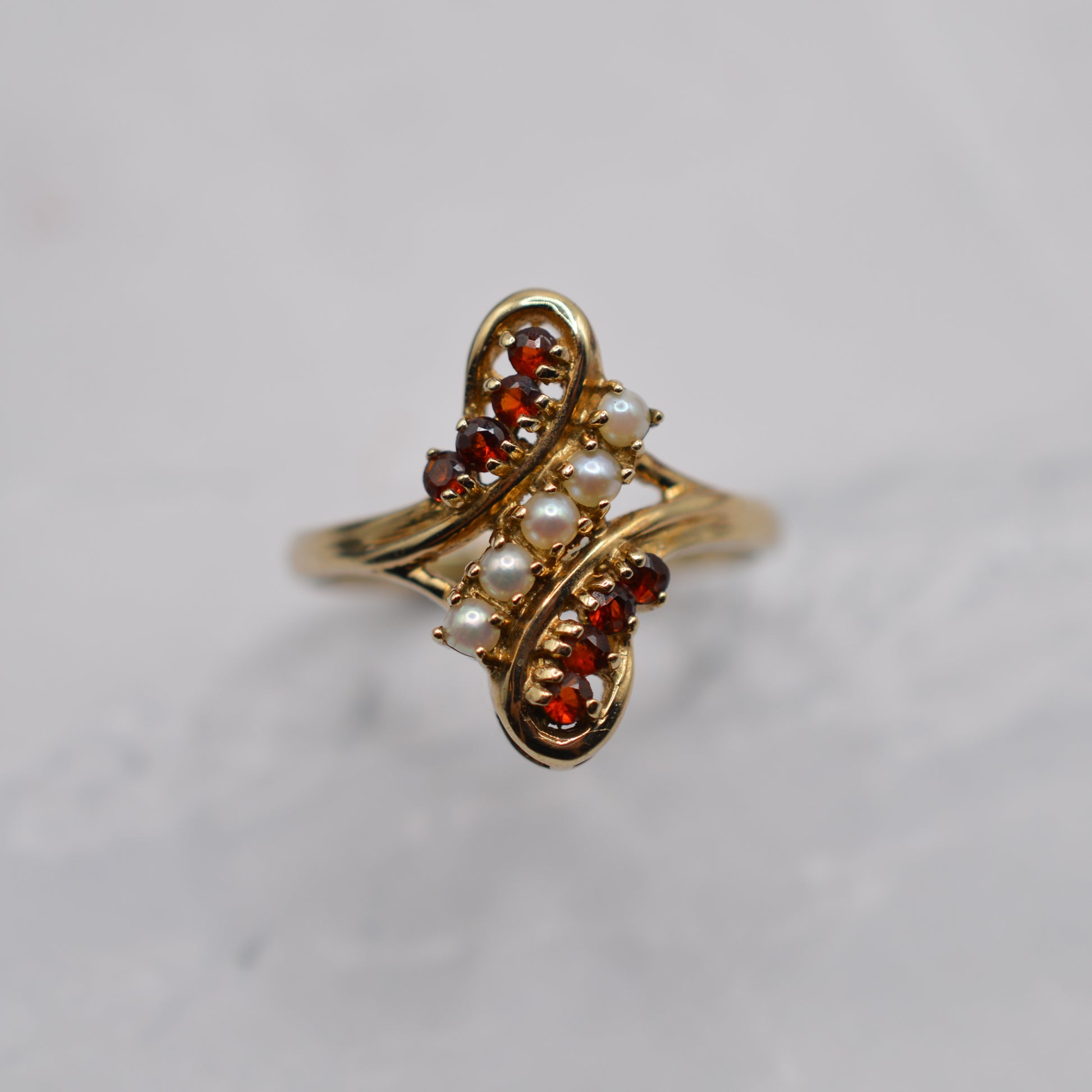 1980s 9ct Gold Garnet & Pearl Dress Ring