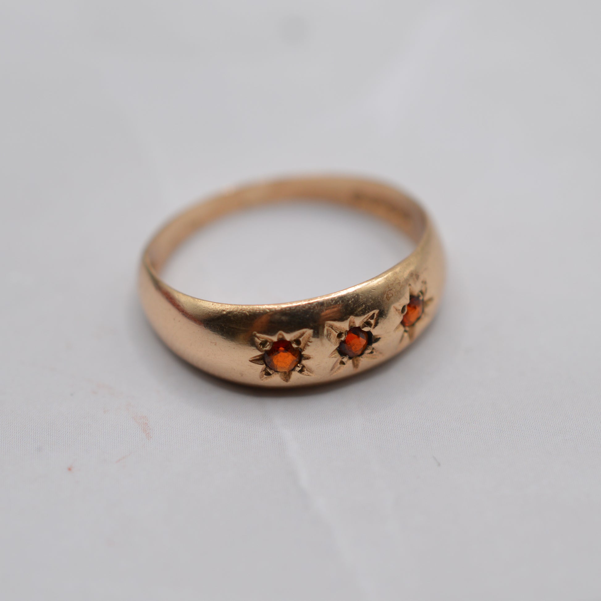 1980s 9ct Gold Garnet Trilogy Gypsy Ring