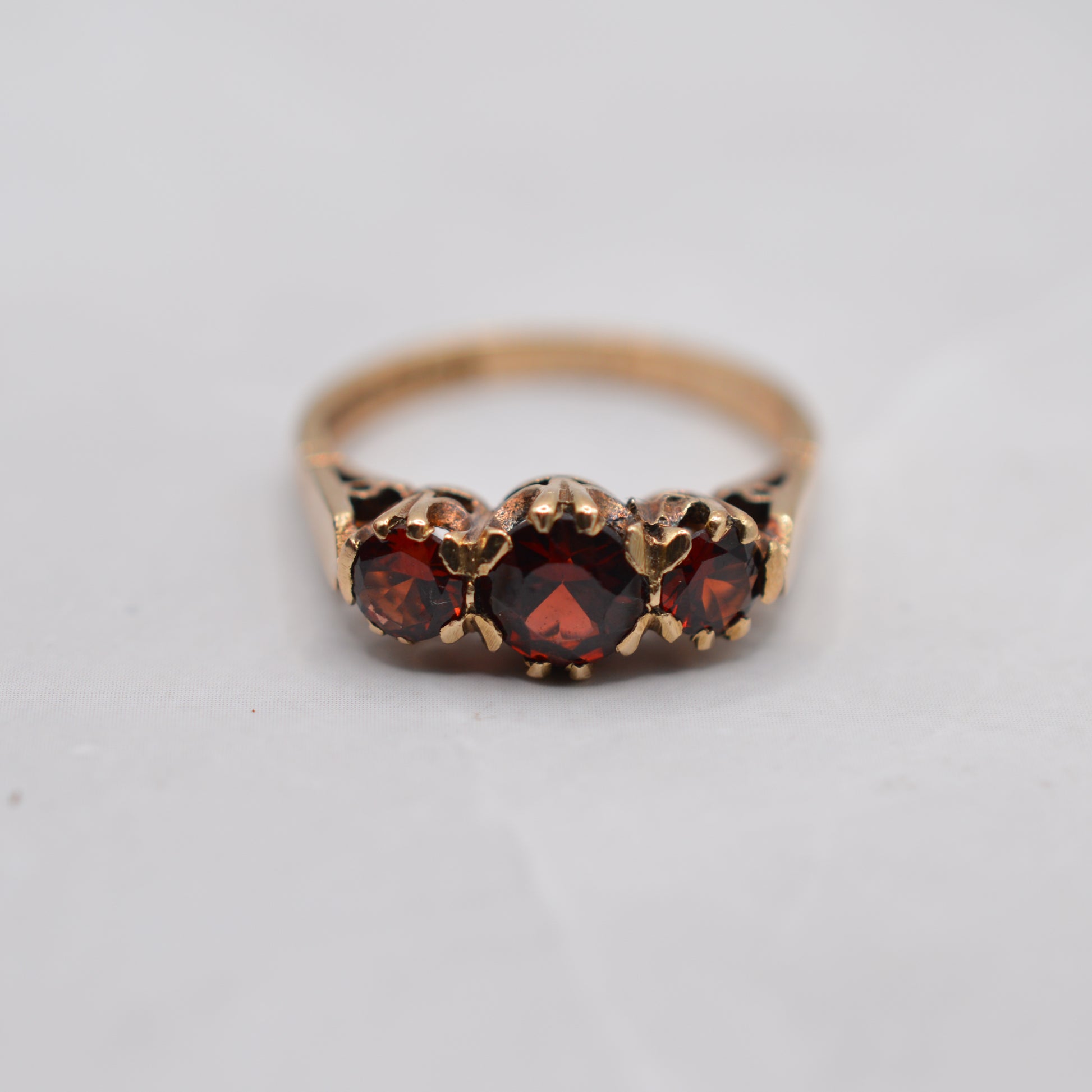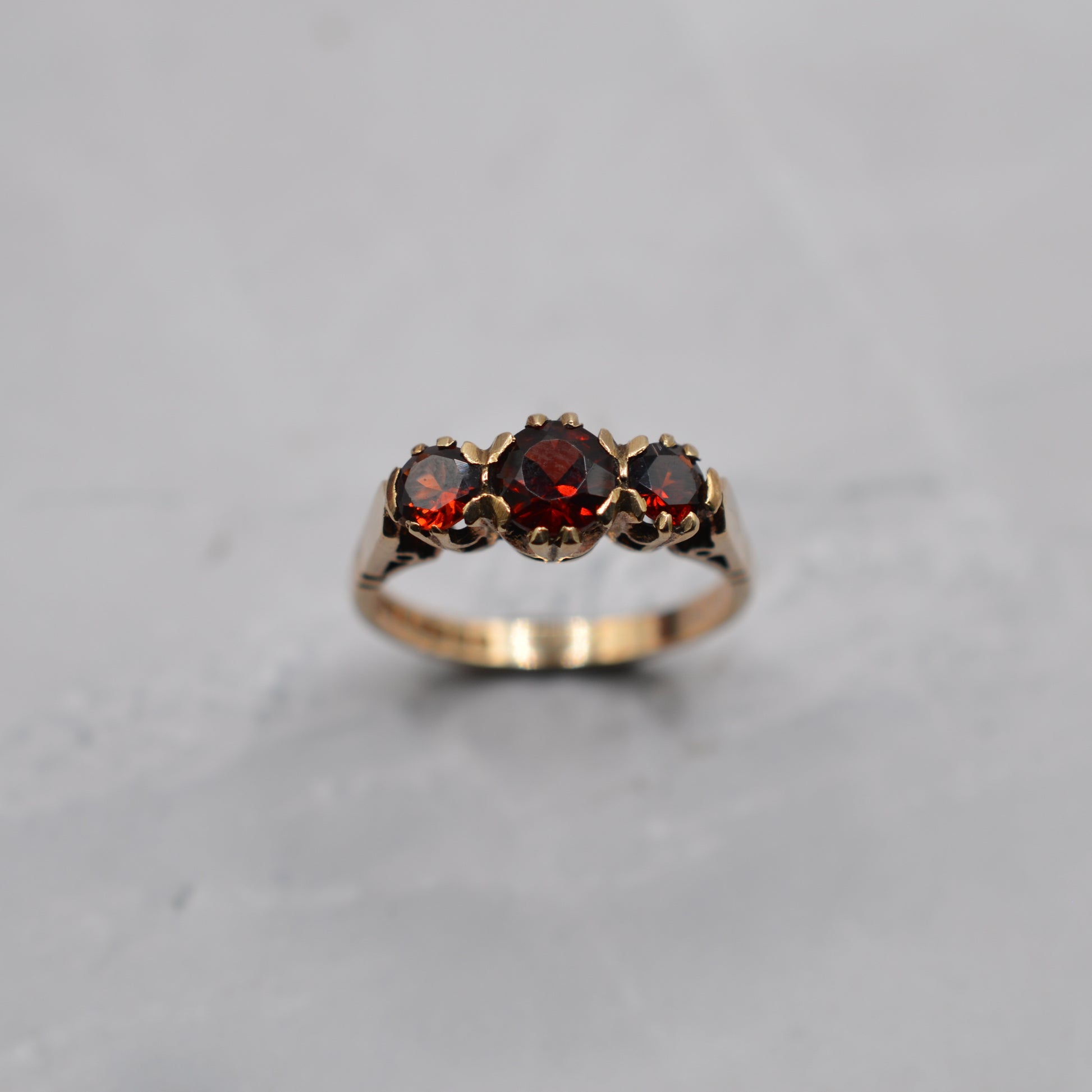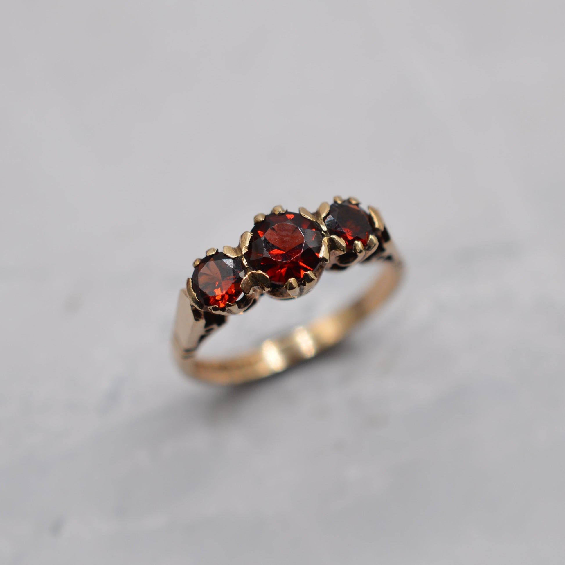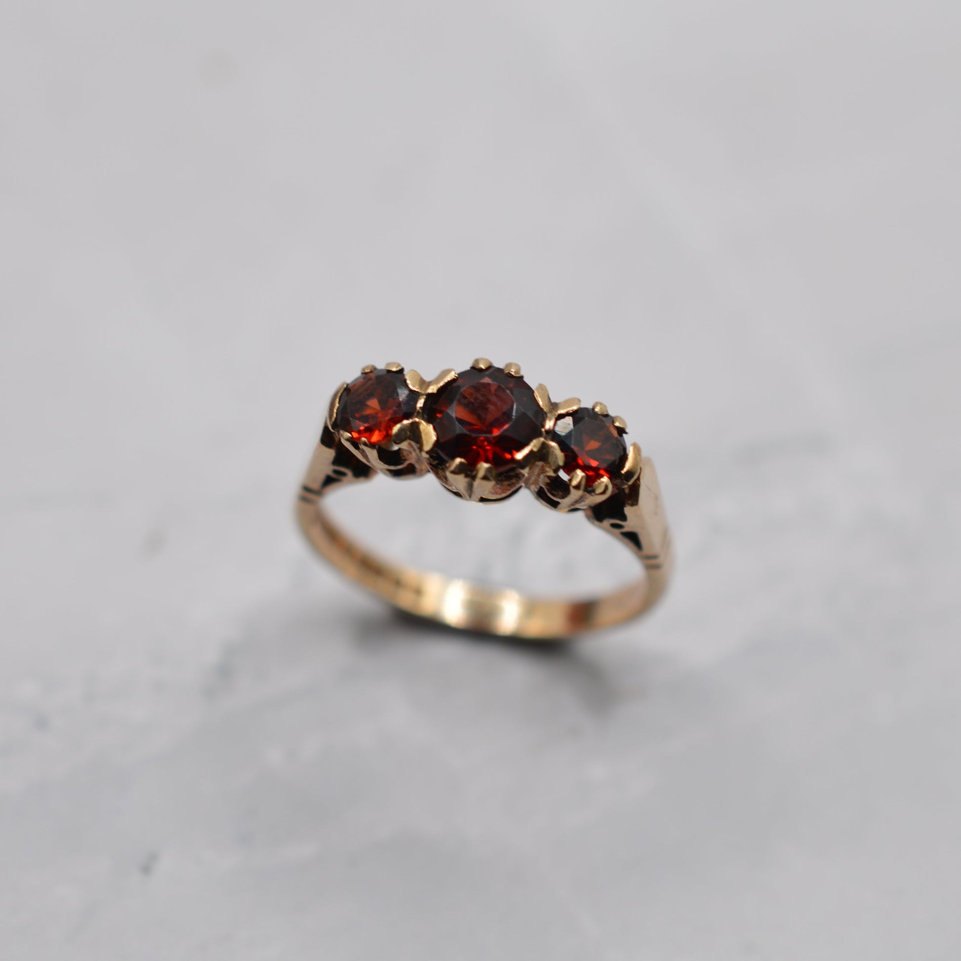1960s Vintage 9ct Gold Garnet Trilogy Ring